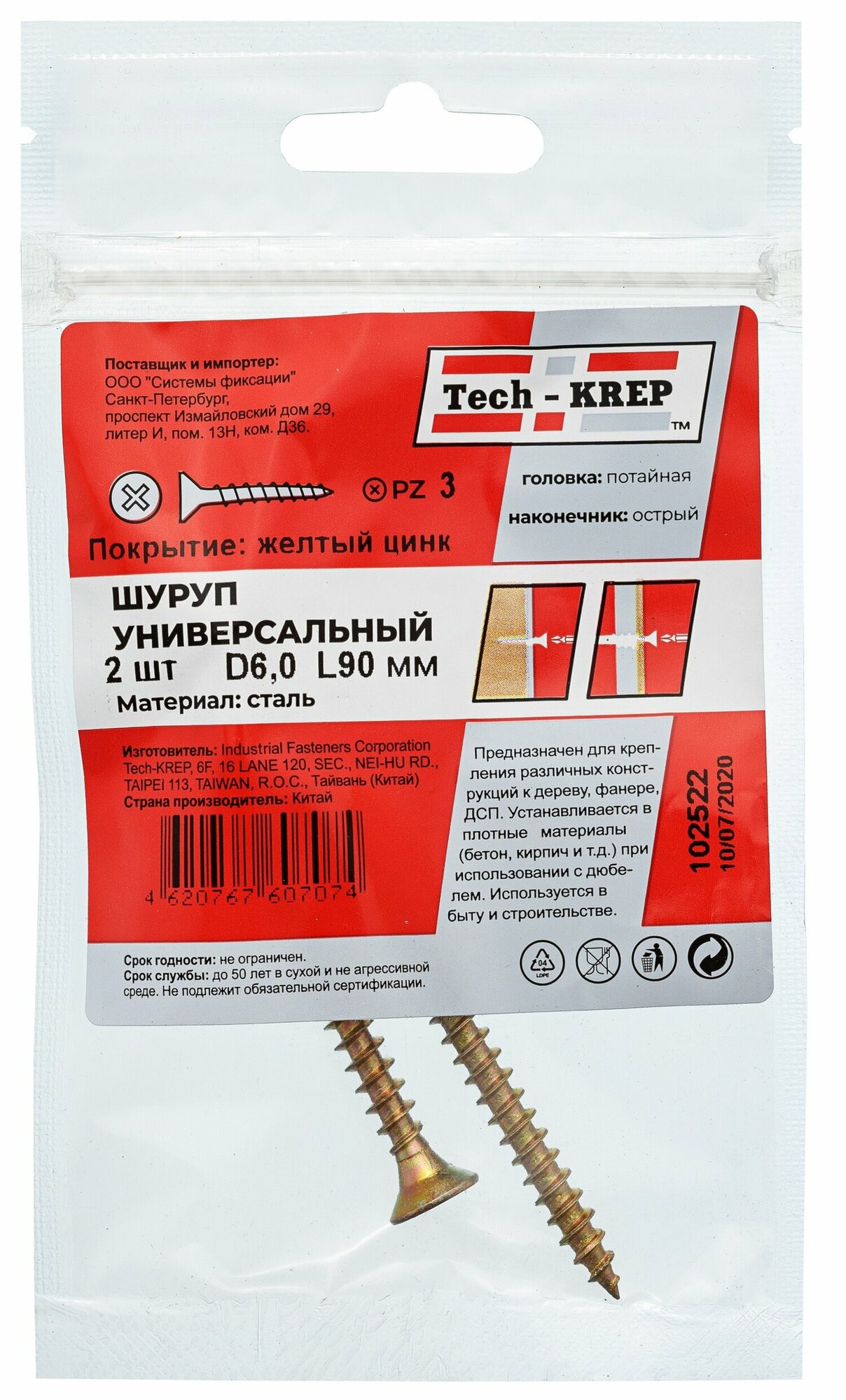 Саморез ШУж Tech-Krep 60х90 с потайной головкой 2 шт в пакете