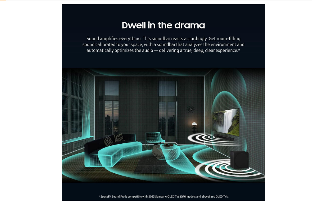 обеспечивает ещё одну впечатляющую реализацию саундбара Samsung 2023 года, обеспечивая объёмный и широкий звук и мощные басы. Имея возможность добавить задние динамики и менее привязанный к QLED-телевизору для достижения наилучших результатов, Q800C предлагает более удобный путь к созданию системы домашнего кинотеатра Atmos, чем предыдущие итерации Samsung среднего уровня.Благодаря четкому и точному звучанию с эффектом погружения Samsung представляет собой привлекательную, компактную и многофункциональную звуковую панель.При содействии функции Q-Symphony саундбары серии Q соединяются с динамиками телевизора, чтобы они работали как единое целое. Вместе они могут оптимизировать все каналы, чтобы предоставить вам мастерски организованный звук.