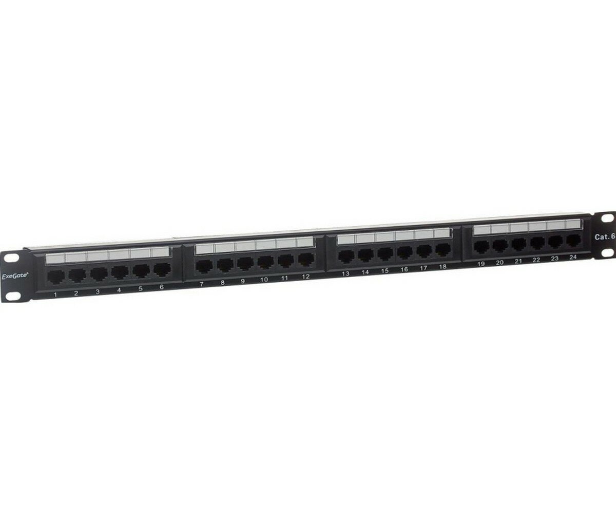 Патч-панель Exegate EX281080RUS (19" UTP 24 port cat.6 KRONE&110(dual IDC) 1U RoHS Black RTL) EPP3-19-24-8P8C-C6-110D