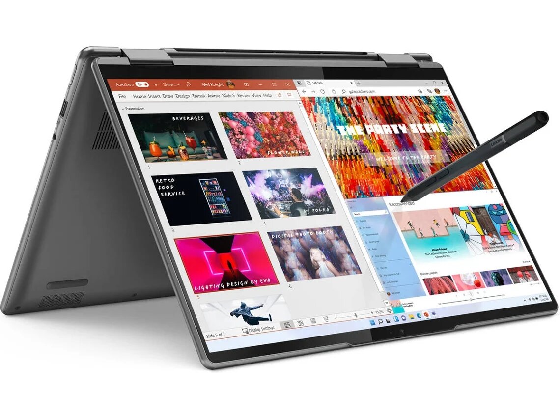 Ноутбук-трансформер — можно разложить на 360 градусов и использовать как планшет. Процессор AMD Ryzen 7 — подходит для рабочих задач и учебы. Емкость SSD-накопителя — 512 Гб. Диагональ экрана — 14 дюймов. Сенсорный дисплей. Встроенная видеокарта Radeon 680M. Матрица IPS — качество изображения не зависит от угла обзора. Клавиатура с подсветкой. Поддержка портов: USB, HDMI. Есть микрофон, веб-камера.