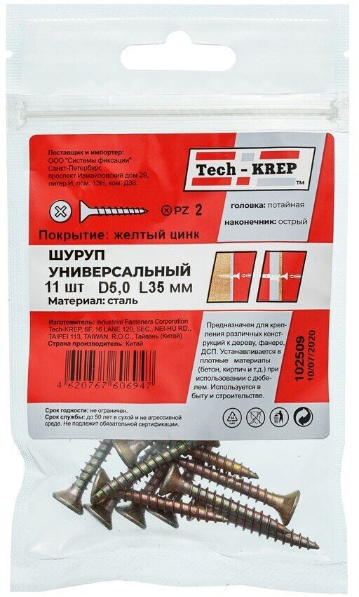 На сегодняшний день товар «Саморез ШУц Tech-Krep 50х35 с потайной головкой 11 шт в пакете» можно купить с кешбеком в 1 магазине: Яндекс.Маркет