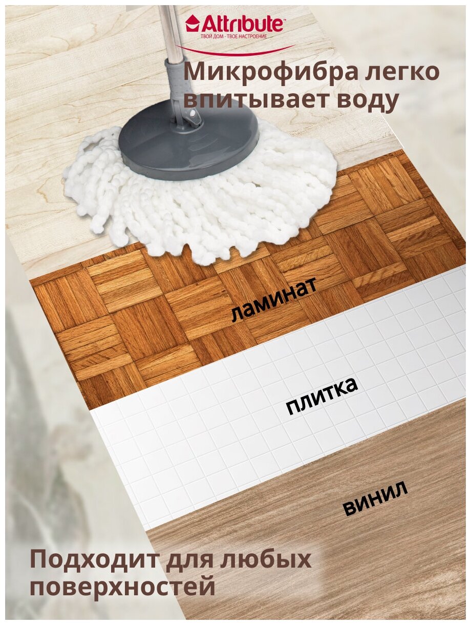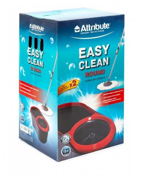 набор для уборки ATTRIBUTE Easy Clean Round: ведро 12л с отжимом + поломой МОП 120х36см + 2 насадки (ACS002)