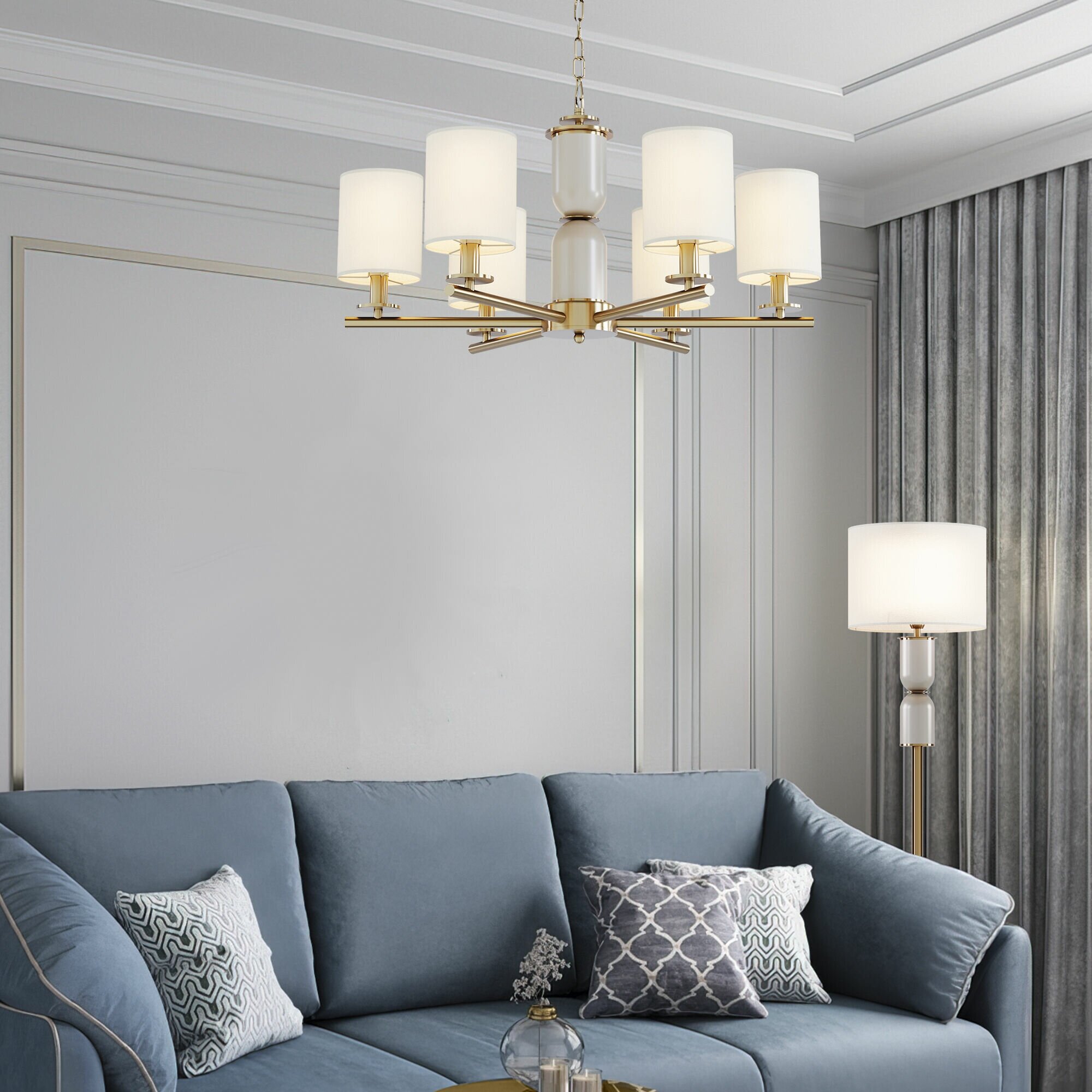 Подвесная люстра Eurosvet Caprera 60146/6 цвета латунь с бежевыми тканевыми абажурами предназначена для создания основного освещения в современных и классических интерьерах, подходит для различных типов помещений: гостиная; спальня и рассчитана на площадь освещения 11 м?. Яркая люстра оснащена патронами с цоколем Е14, которые рассчитаны на максимальную мощность ламп 40 Вт. Люстра украшена дополнена выразительными тканевыми абажурами. Арматура изготовлена из высококачественного металла с защитным покрытием, что обеспечивает надежную электроизоляцию. Благодаря подвесу в виде цепи можно регулировать высоту люстры. Серия Caprera представлена в двух цветах – никель и латунь и состоит из: потолочная люстра с 6 и с 8 абажурами, торшер, настольная лампа и настенный светильник.