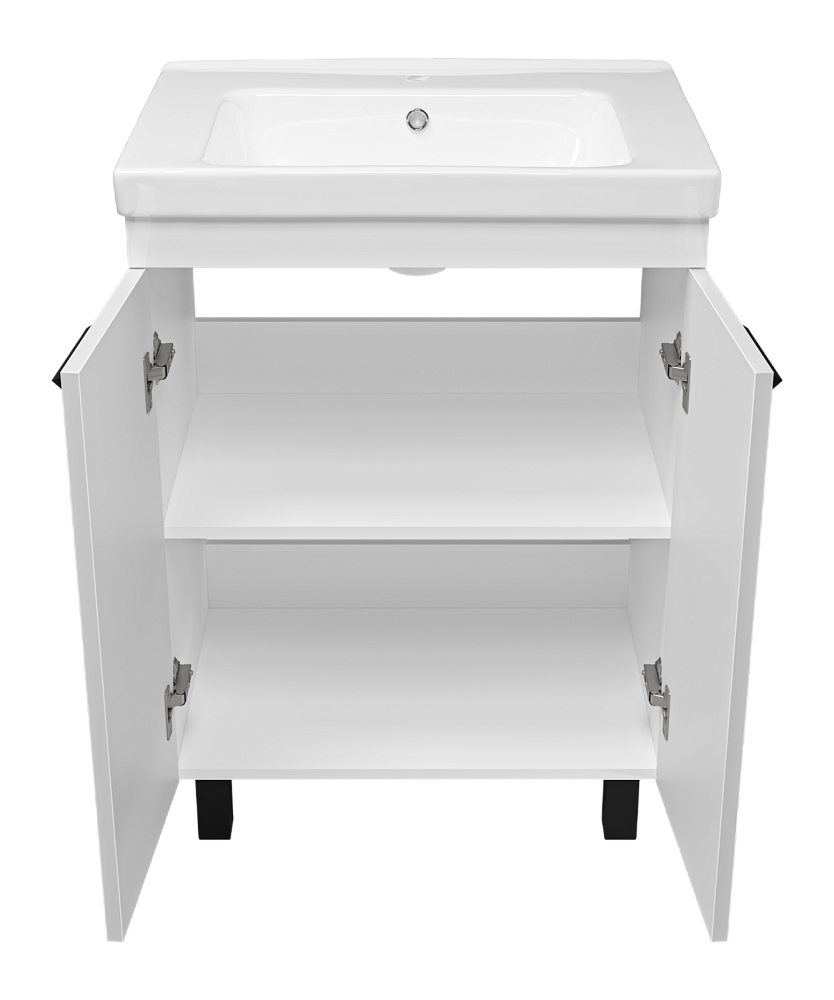 Тумба для комплекта Misty Спарта 65 белая не только великолепное украшение для ванной комнаты, но и несравненное функциональное решение любого санузла. Напольный способ установки производится непосредственно на пол, при этом конструкция максимально устойчива при серьезных физических нагрузках.