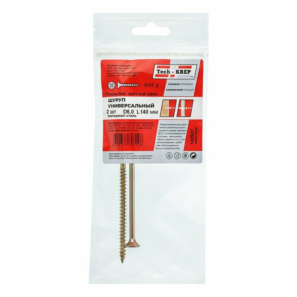 Саморез ШУж Tech-Krep 60х140 с потайной головкой 2 шт в пакете