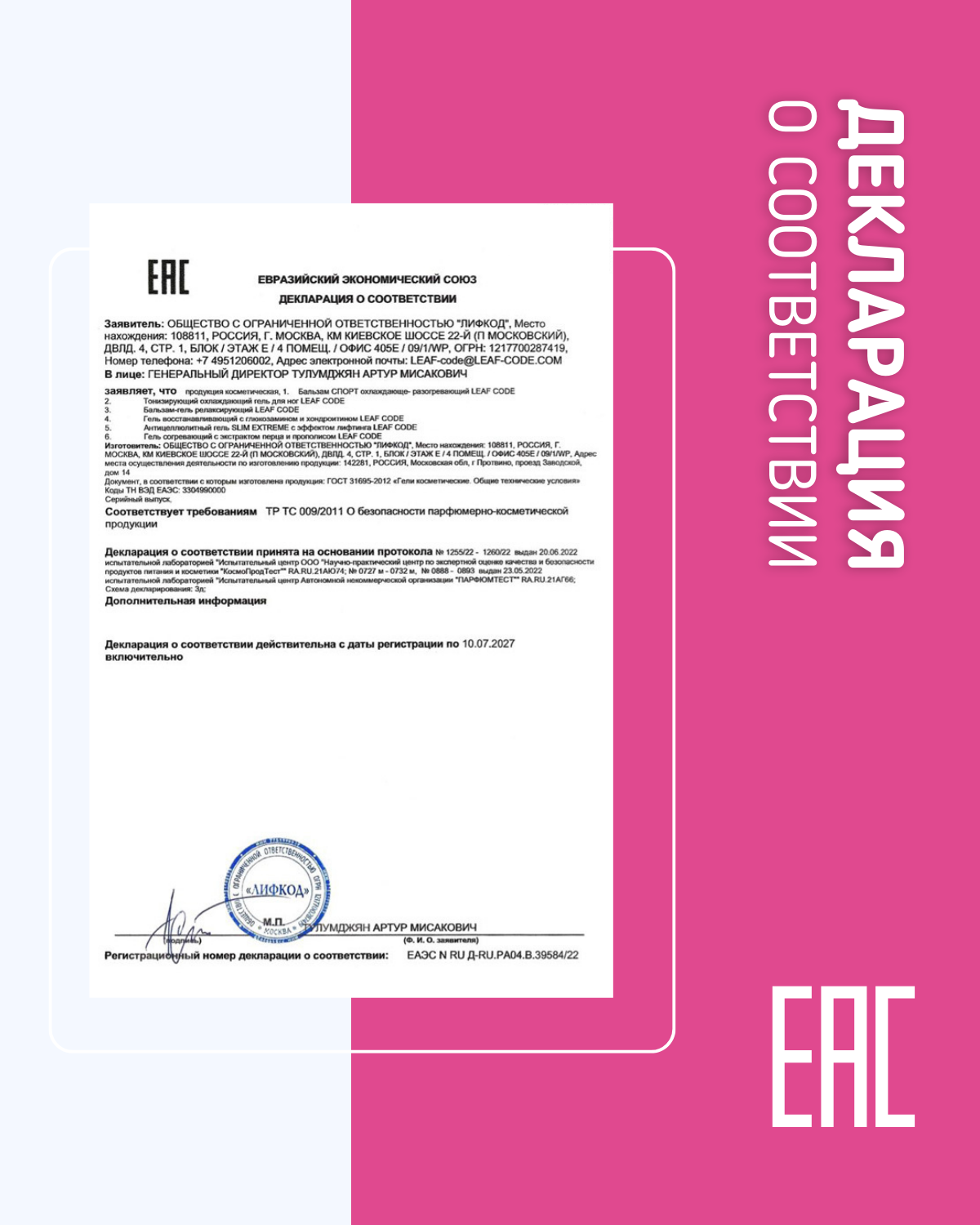 Слим Экстрим антицеллюлитный гель c эффектом лифтинга 150мл Лифкод