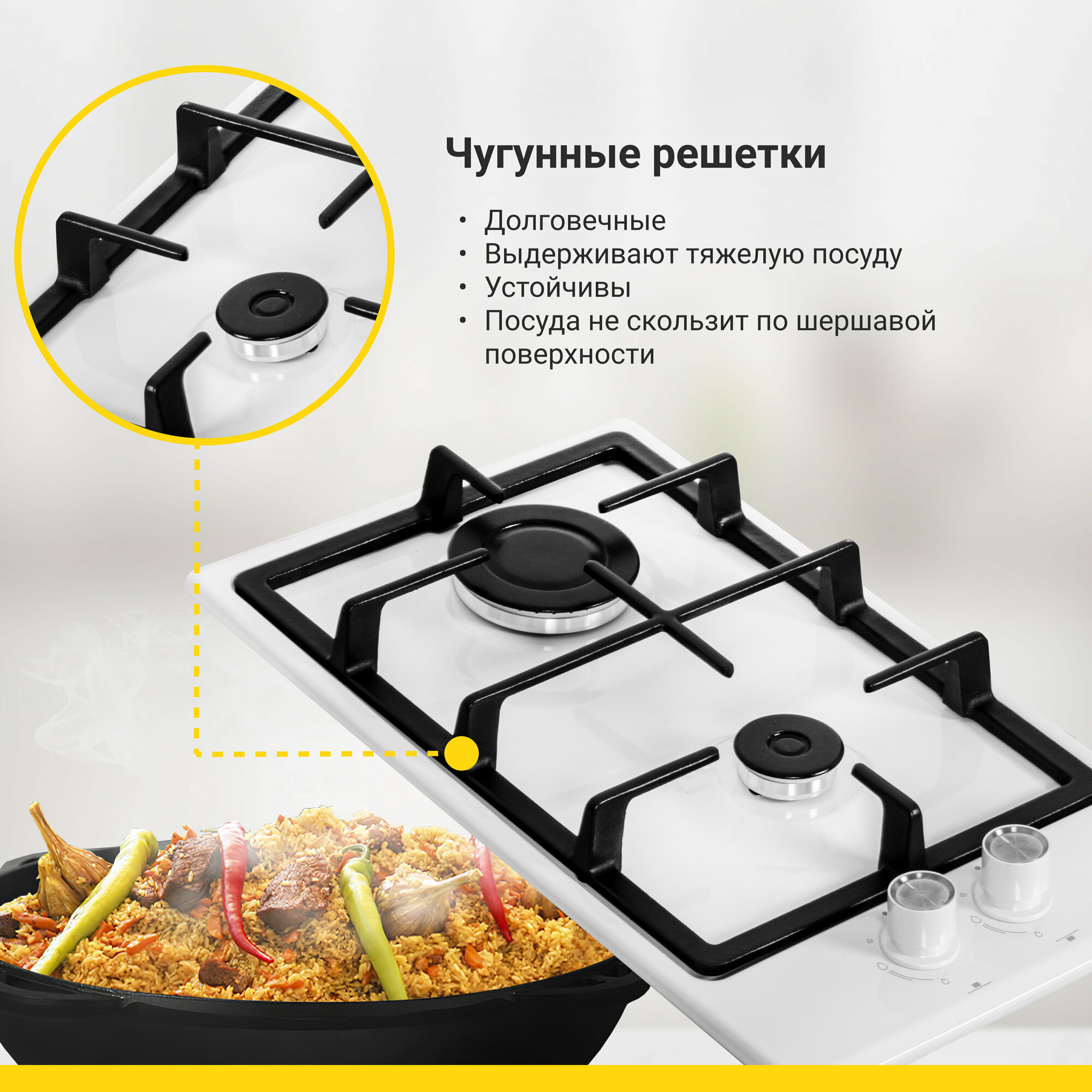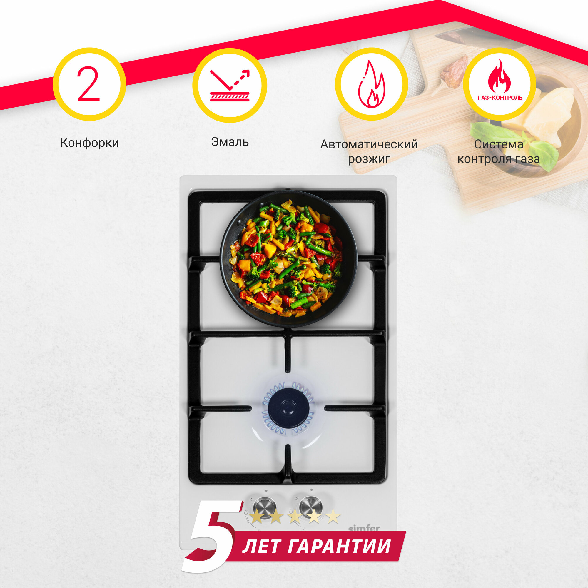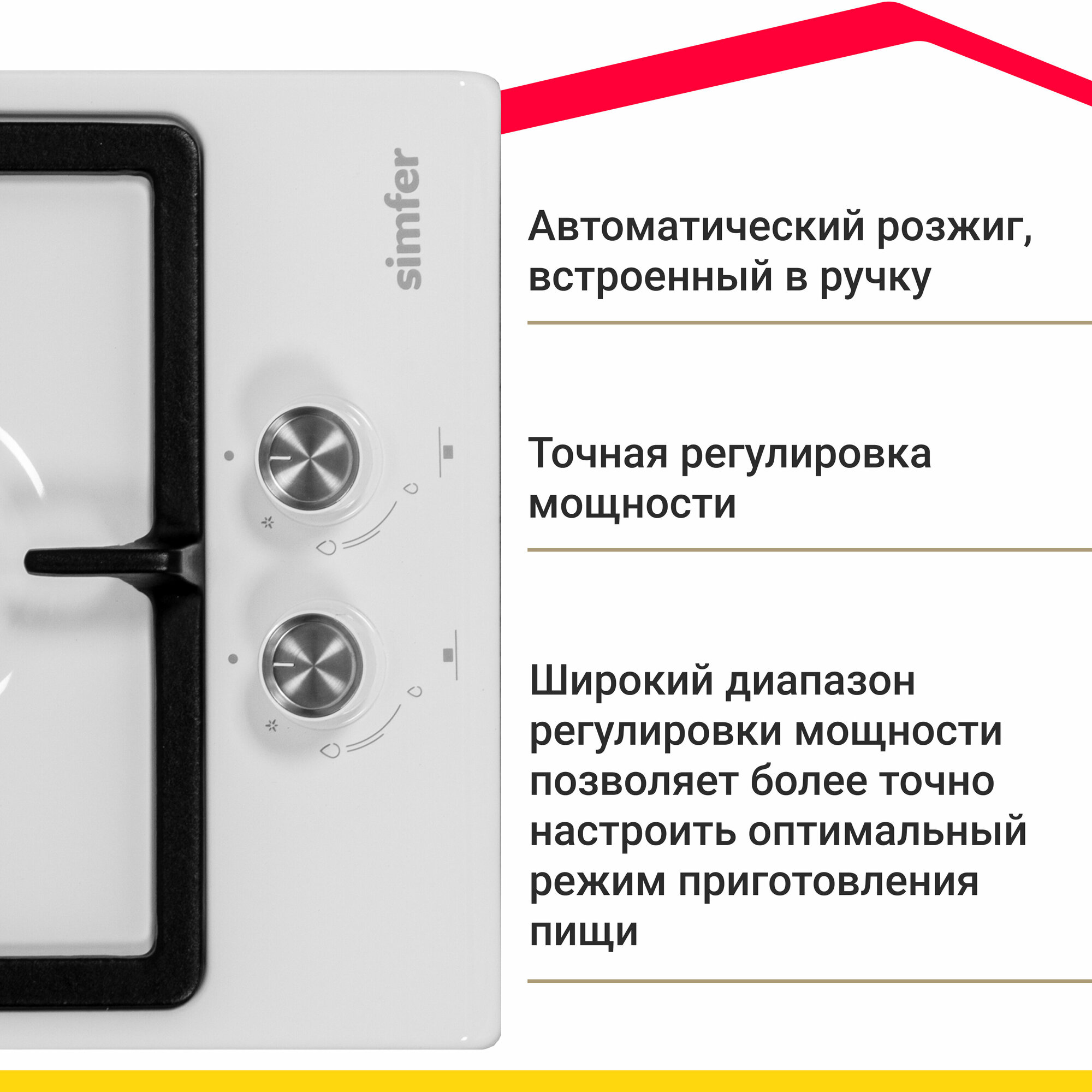 Газовая варочная панель Simfer H30V20W570 (с газ-контролем чугунные решетки автоподжиг белая)