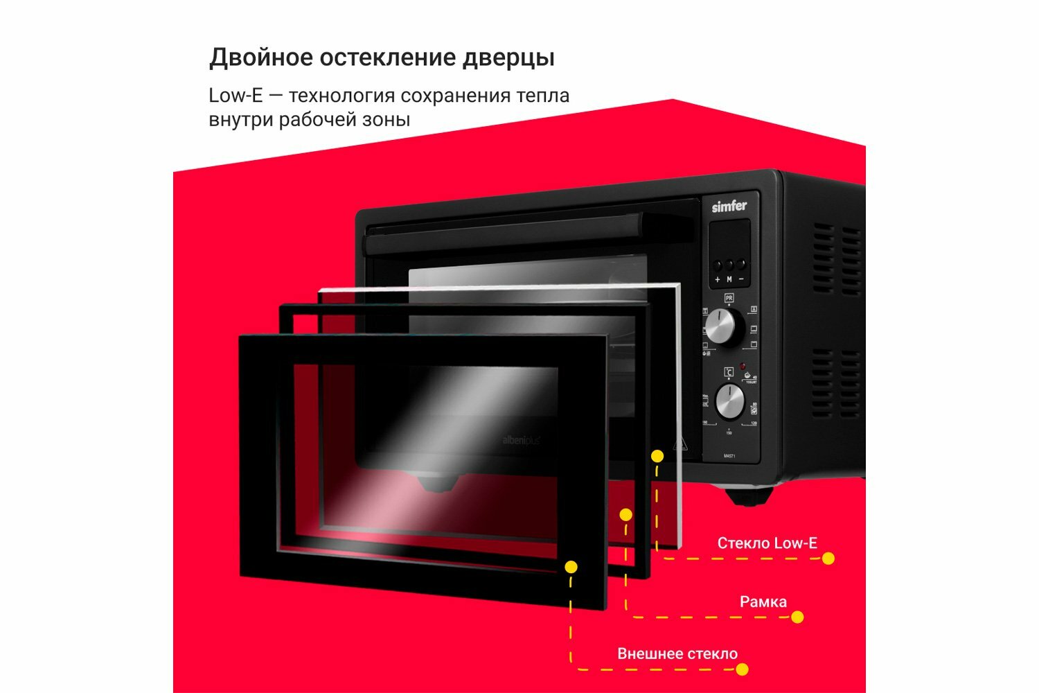 Мини-печь Simfer M4571 (6 режимов конвекция двойное стекло цифровой дисплей цвет черный)