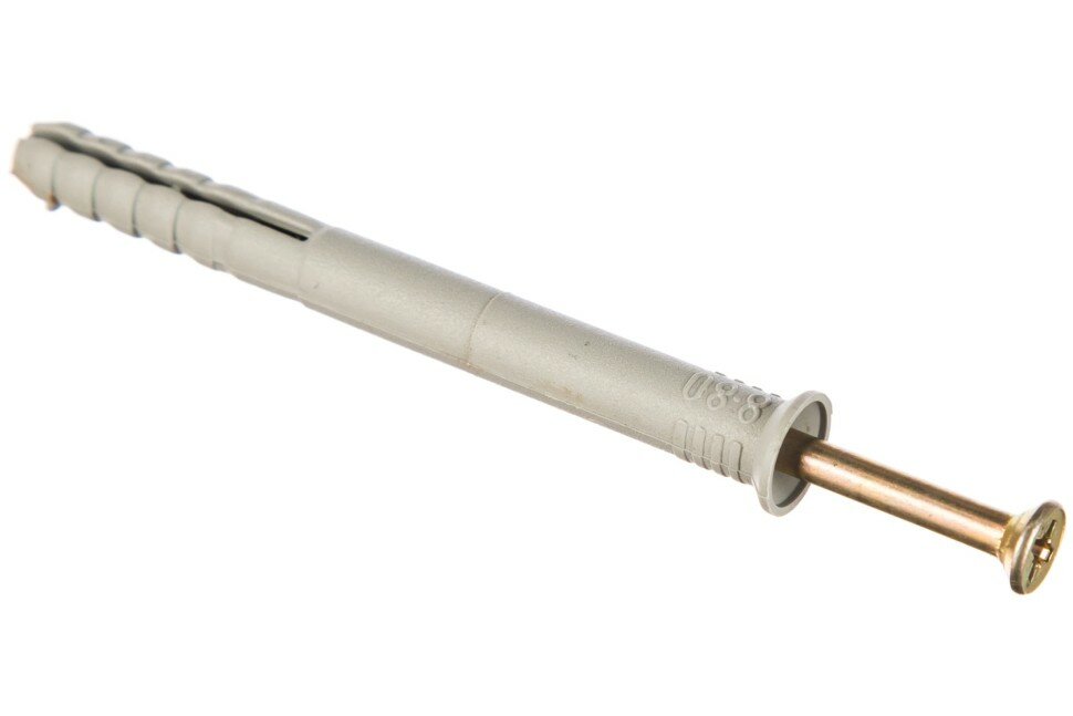 Дюбели в комплекте с гвоздём гвоздеобразный шуруп с крестообразным шлицом , шлиц которого позволяет демонтировать закрепляемую деталь без нарушения внешнего вида крепления. Предназначены для быстрого монтажа в бетон, керамический полнотелый кирпич, ячеистый бетон, клинкерный кирпич и натуральный камень.