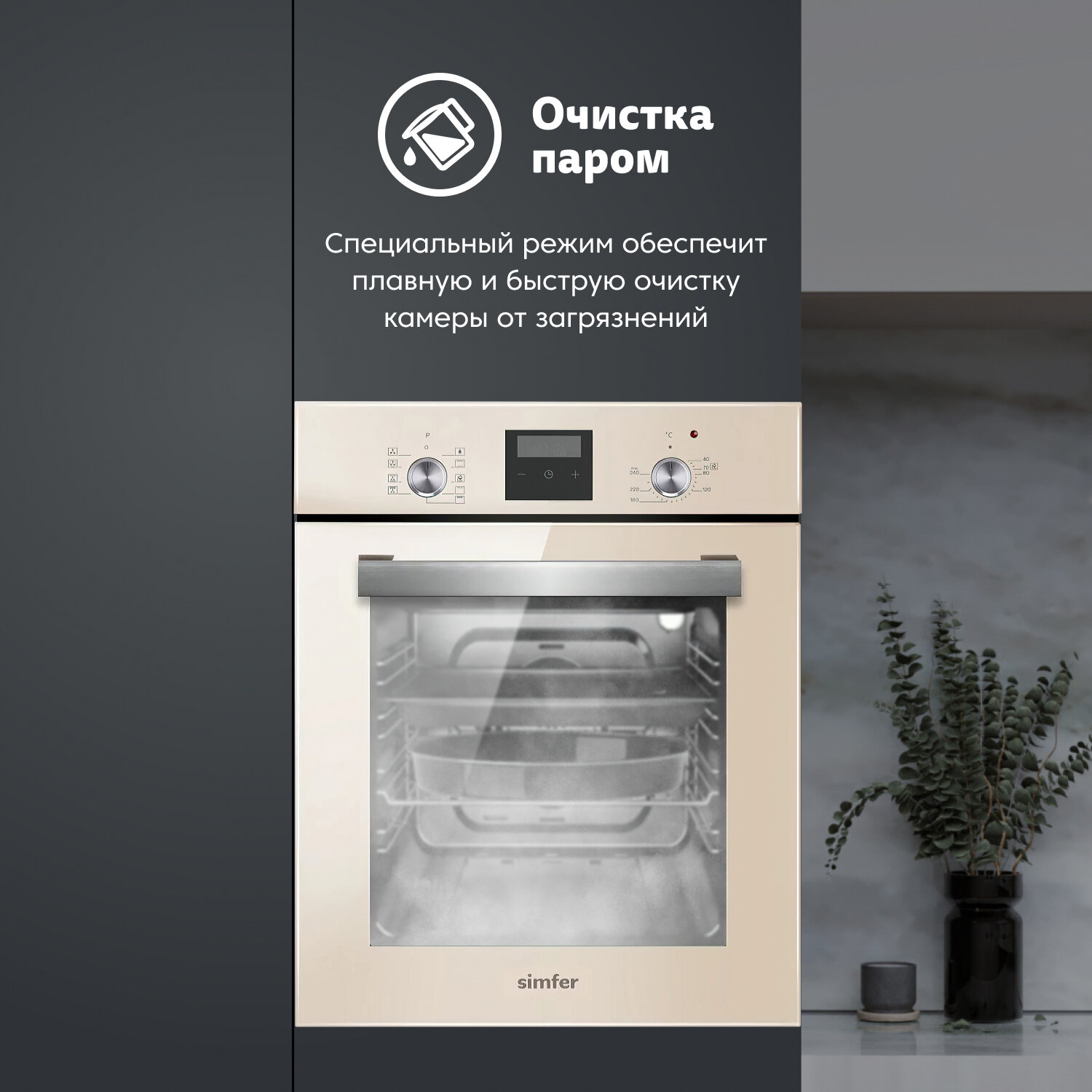 • Очистка камеры духовки: эмаль ле?гкои? очистки чёрного цвета, паровая очистка