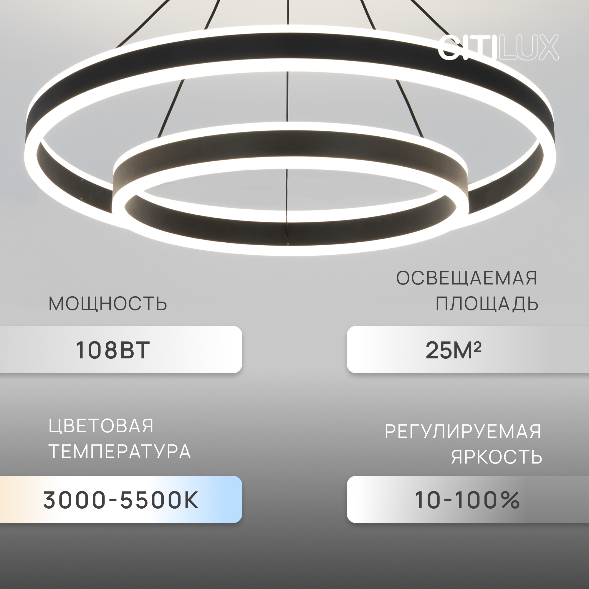 Кольцевая люстра Ситилюкс Дуэт CL719641 прекрасно осветит помещения как с высокими, так и с низкими потолками площадью до 25м².