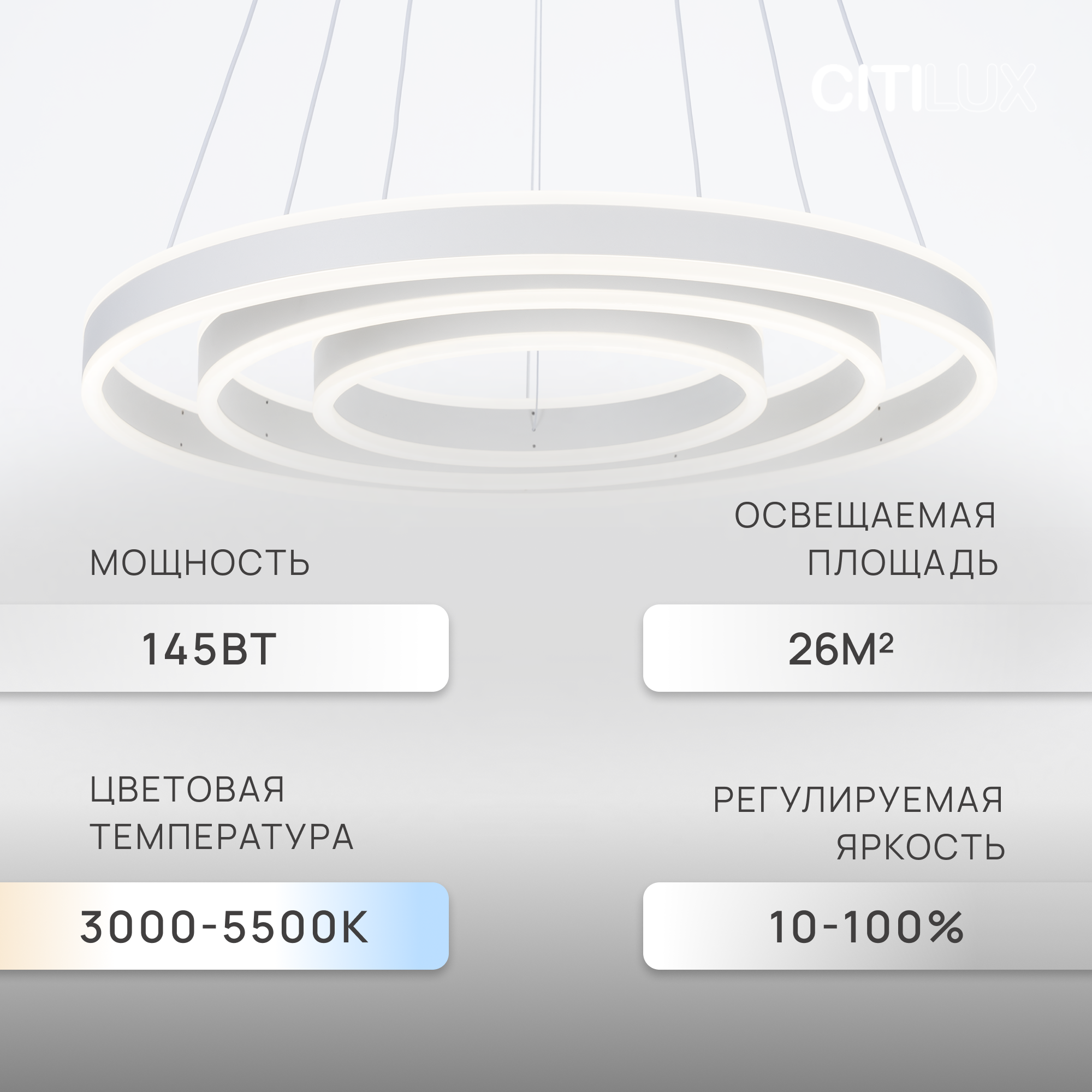 Citilux Дуэт CL719650 LED Люстра подвесная с пультом Белая