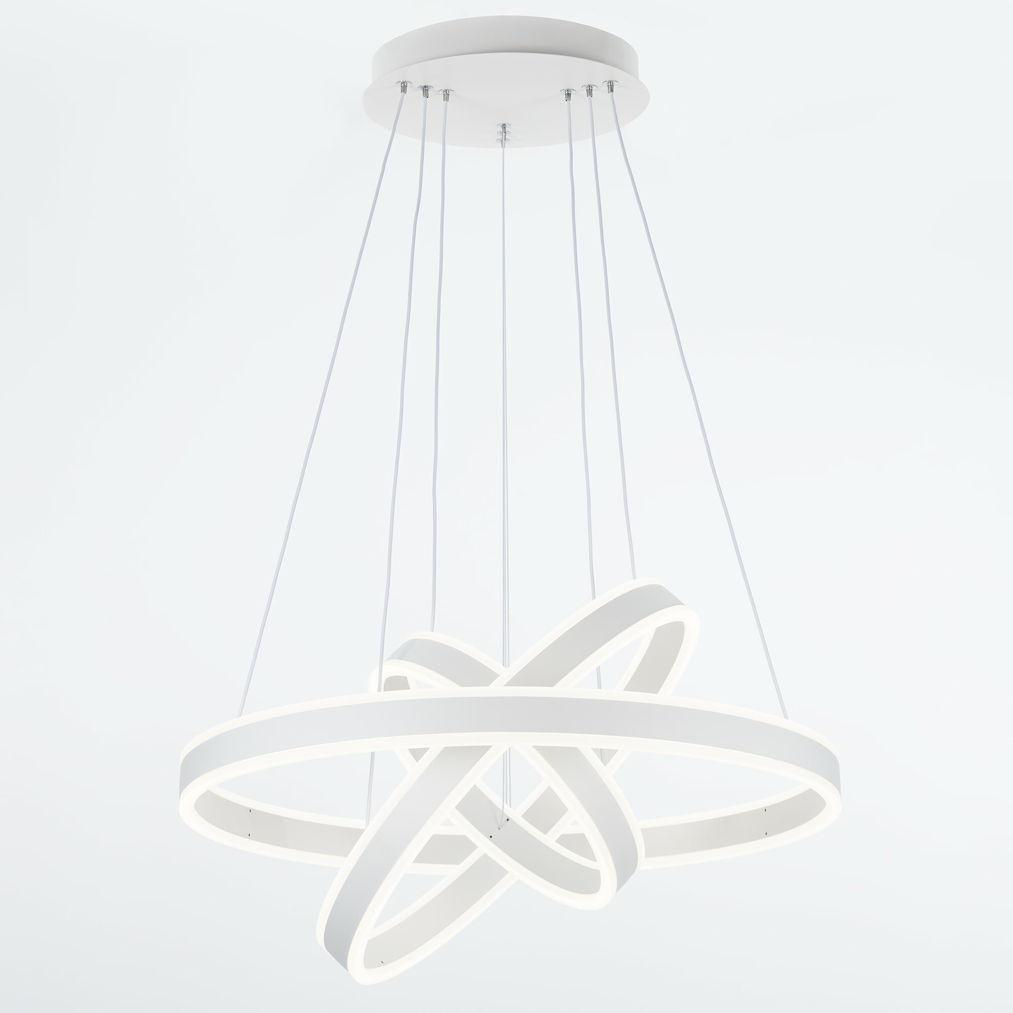 Светодиодная люстра Citilux Дуэт CL719650 выполнена в современном стиле. Белая люстра на тросах в форме каскада из трёх колец, высоту и угол наклона каждого из которых можно легко изменить. Кольца - светодиодные модули изготовлены из алюминиевого профиля, рассеиватель из оптического полимера. Наличие источников света с двух сторон профиля позволяет равномерно осветить всё помещение.