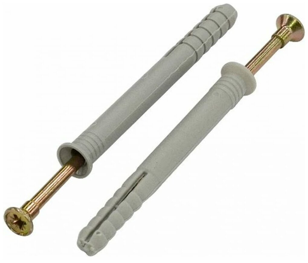 Дюбели в комплекте с гвоздём гвоздеобразный шуруп с крестообразным шлицом , шлиц которого позволяет демонтировать закрепляемую деталь без нарушения внешнего вида крепления. Предназначены для быстрого монтажа в бетон, керамический полнотелый кирпич, ячеистый бетон, клинкерный кирпич и натуральный камень.