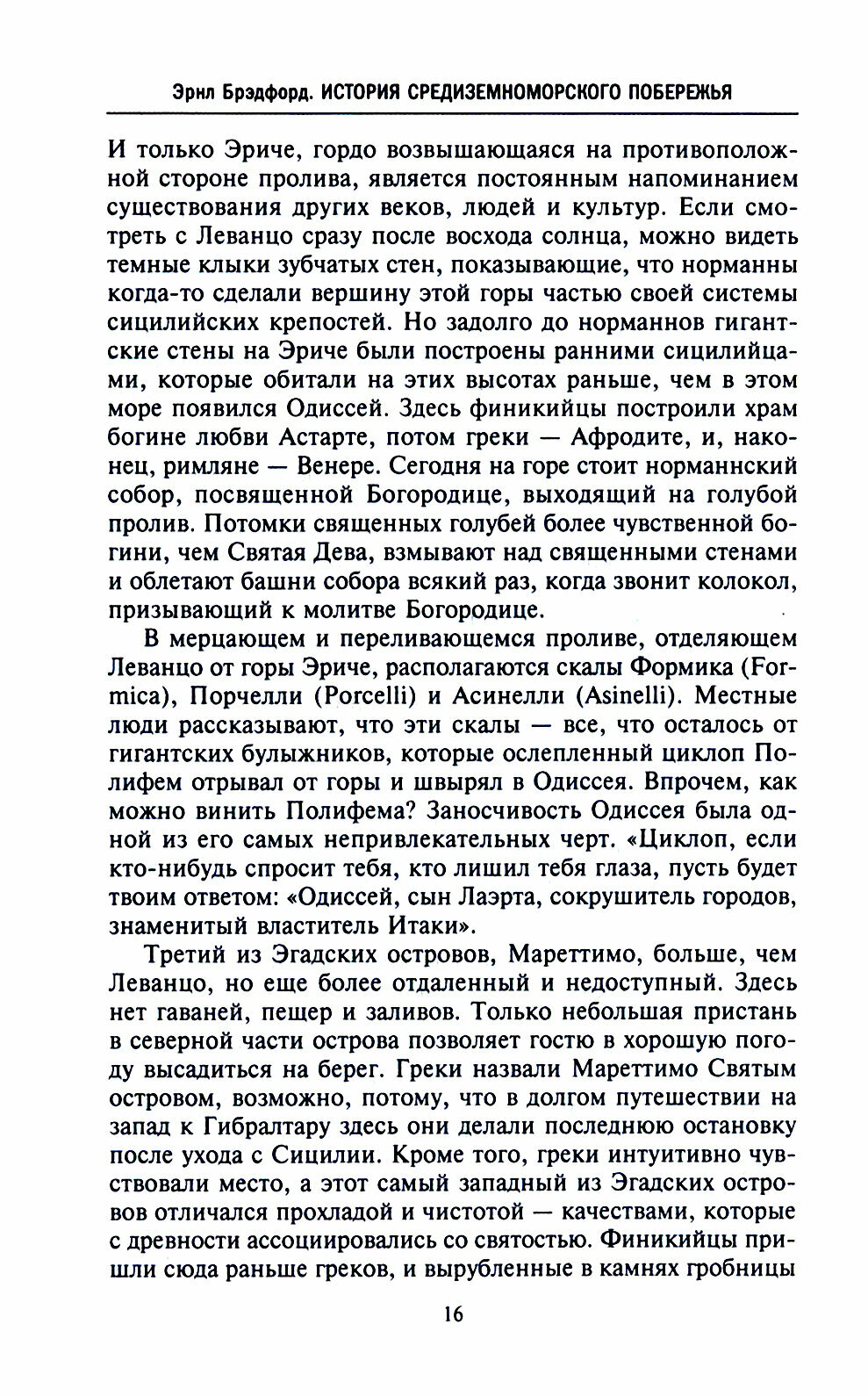 Книга видного британского историка — яркий и невероятно увлекательный рассказ обо всех сторонах жизни Средиземноморья, включая климатические условия, географию, флору и фауну. Однако главное внимание Брэдфорд уделяет богатой и многогранной истории этого региона. Он пишет об этрусках, финикийцах, греках и персах; рассказывает о кораблях, на которых они плавали, о войнах, которые они вели. Он представляет Пелопонесскую войну, анализирует отношения греков с Востоком, борьбу между Римом и Карфагеном. Показывает, как Рим стал Вечным городом, затем маятник качнулся на восток, и произошло возвышение Константинополя. Автор уделяет большое внимание взаимоотношениям Западной и Восточной Римских империй, арабским завоеваниям, Крестовым походам, падению Византии, приходу турок, последствиям кампаний Наполеона и двух мировых войн. Он описывает великие морские сражения и людей, которые в них участвовали.