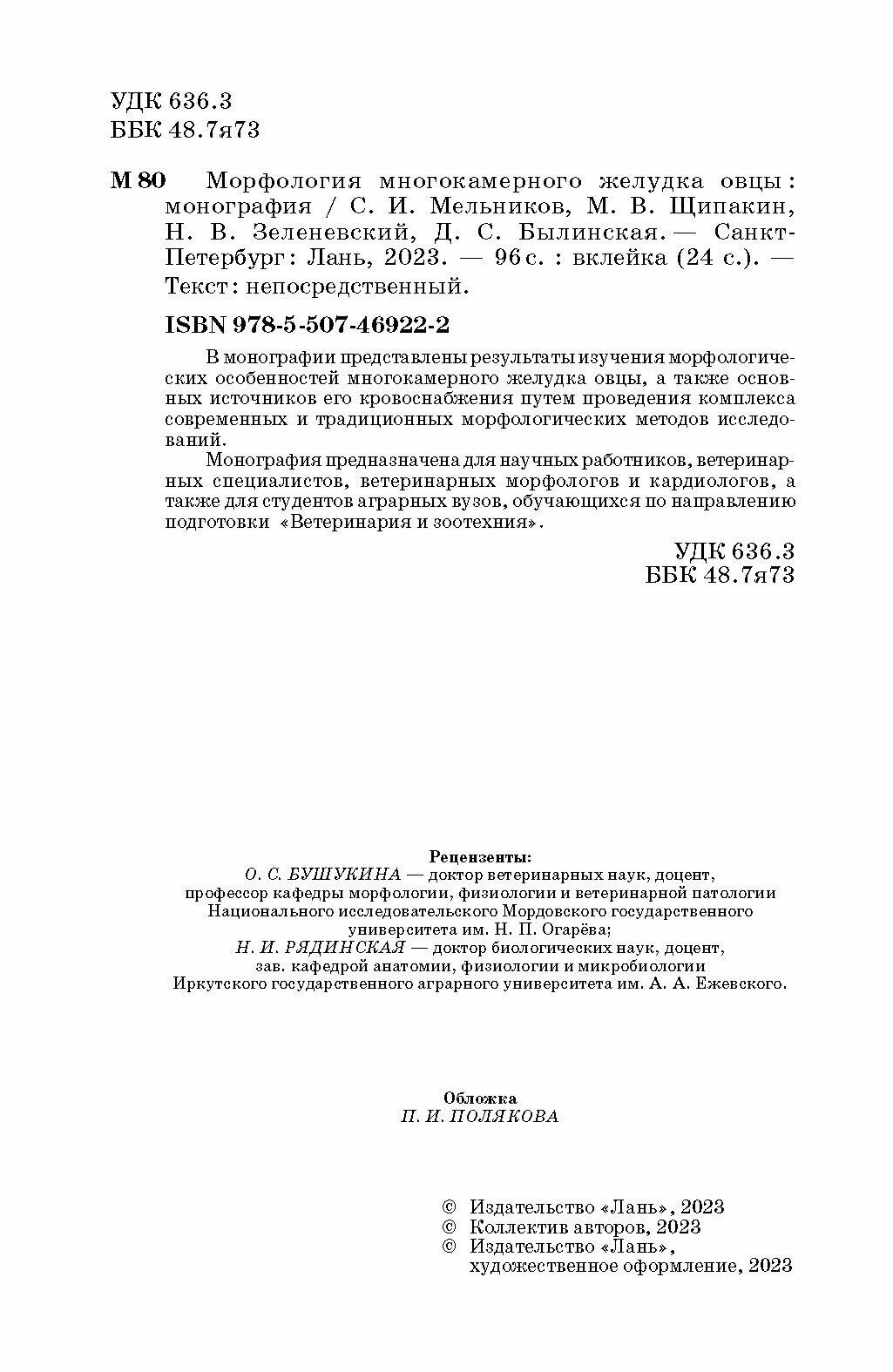 Морфология многокамерного желудка овцы. Монография (Щипакин Михаил Валентинович, Былинская Дарья Сергеевна, Мельников Сергей Игоревич); Лань, 2023