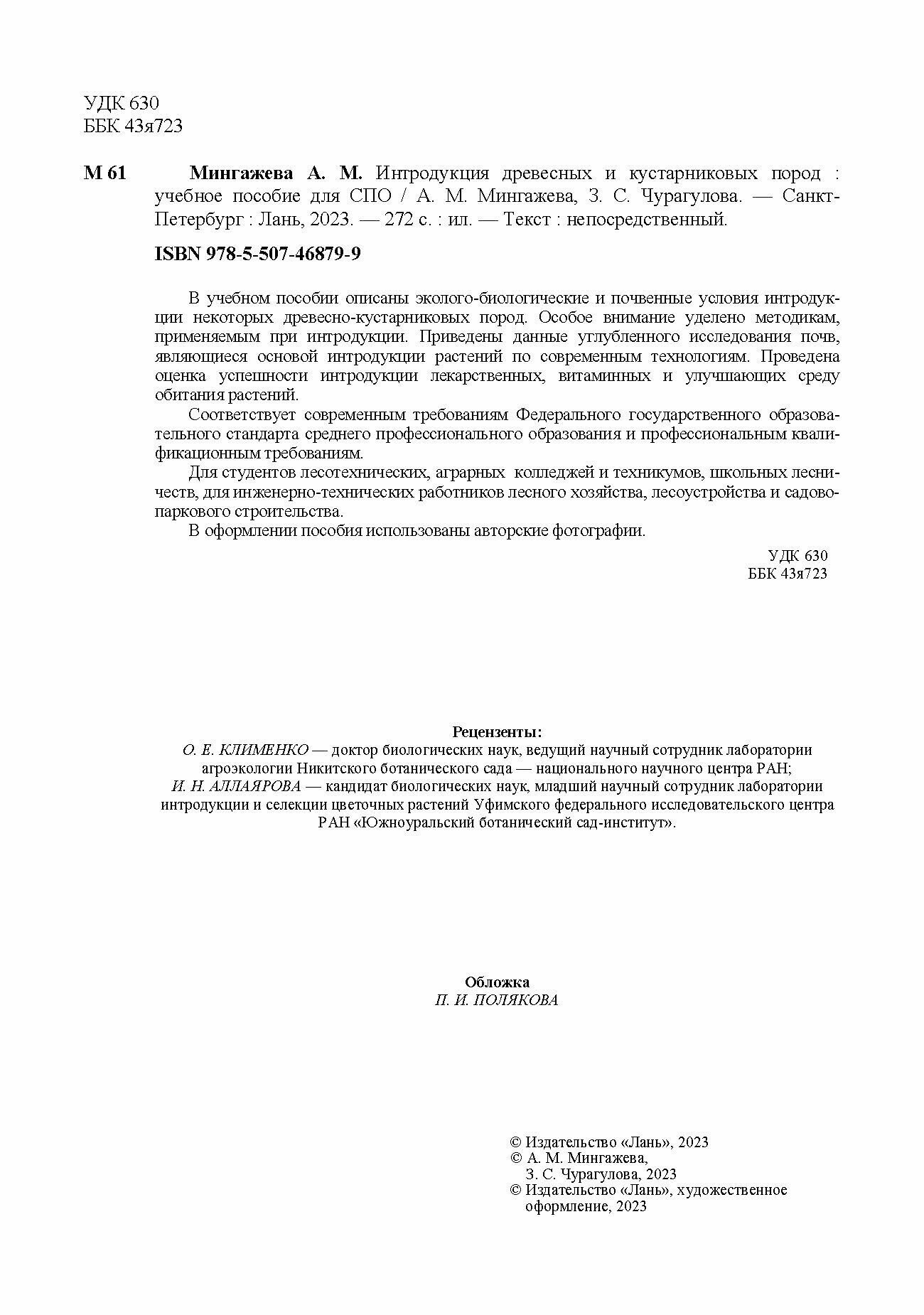 Интродукция древесных и кустарниковых пород. СПО (Чурагулова Зила Султановна, Мингажева Альфия Муратовна); Лань, 2023