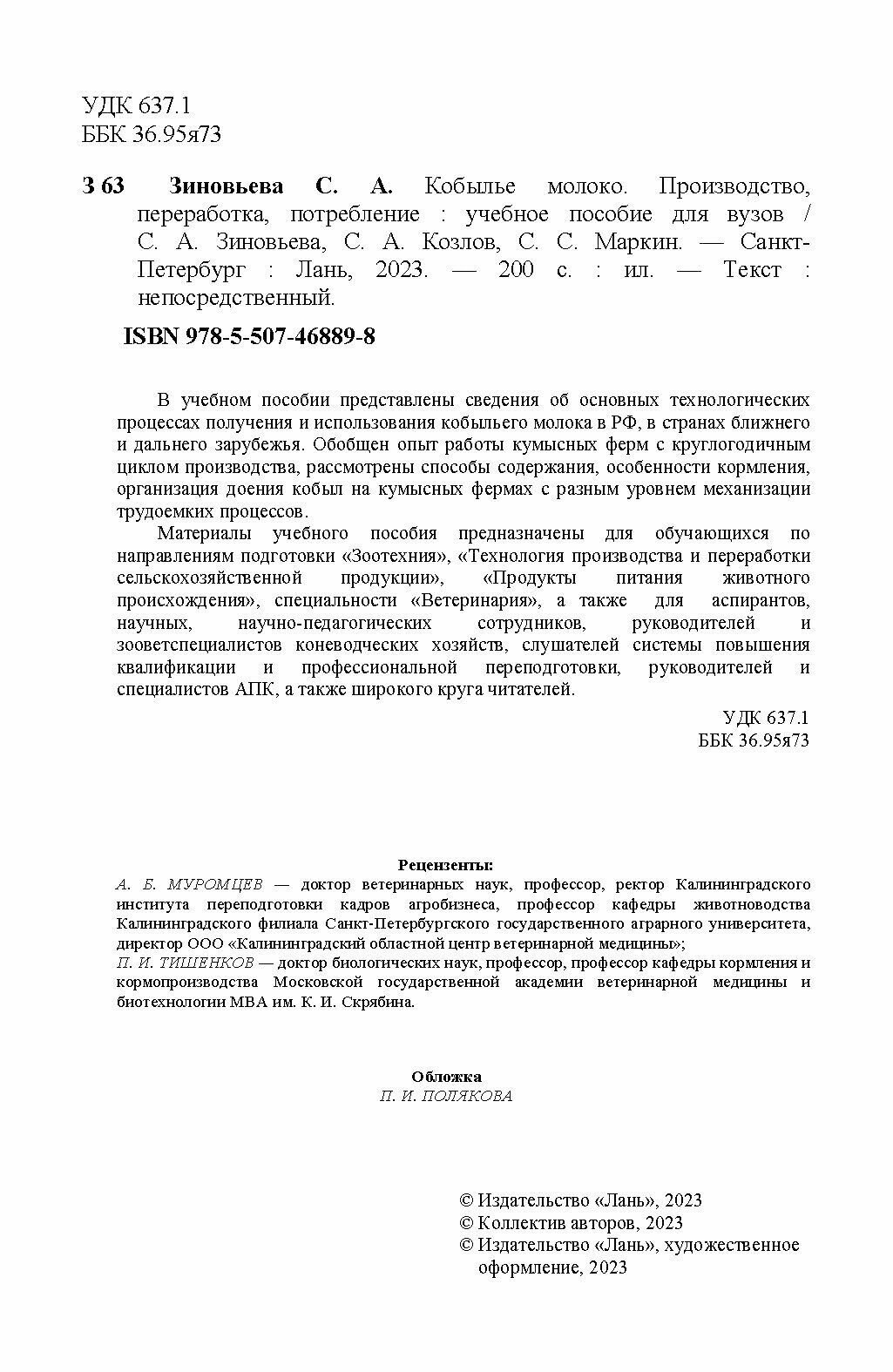 Кобылье молоко. Производство переработка потребление. Учебное пособие (Светлана Зиновьева); Издательство ЛАНЬ, 2023