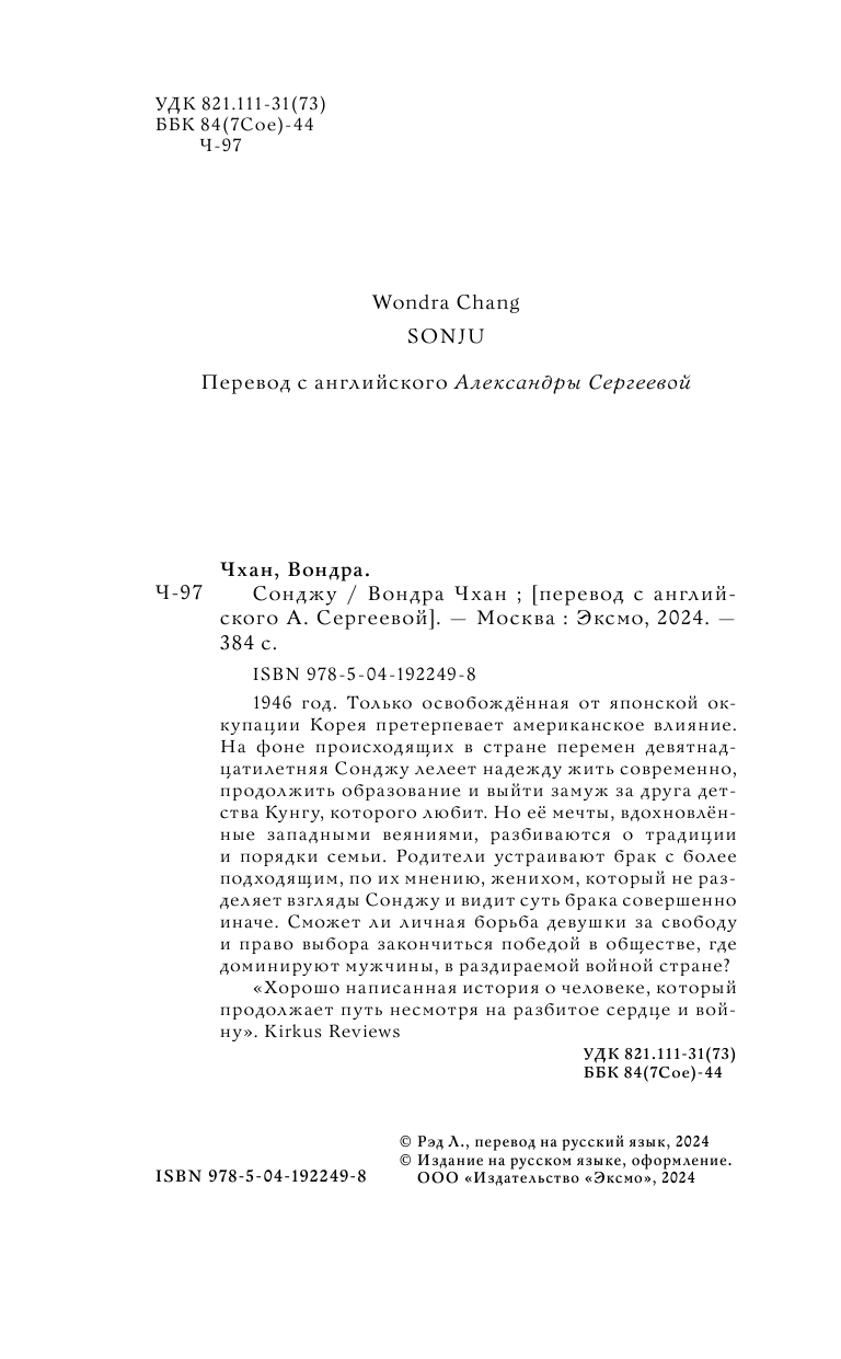 Книга: Сонджу (Вондра Чхан); Эксмо, Inspiria, Редакция 1, 2023
