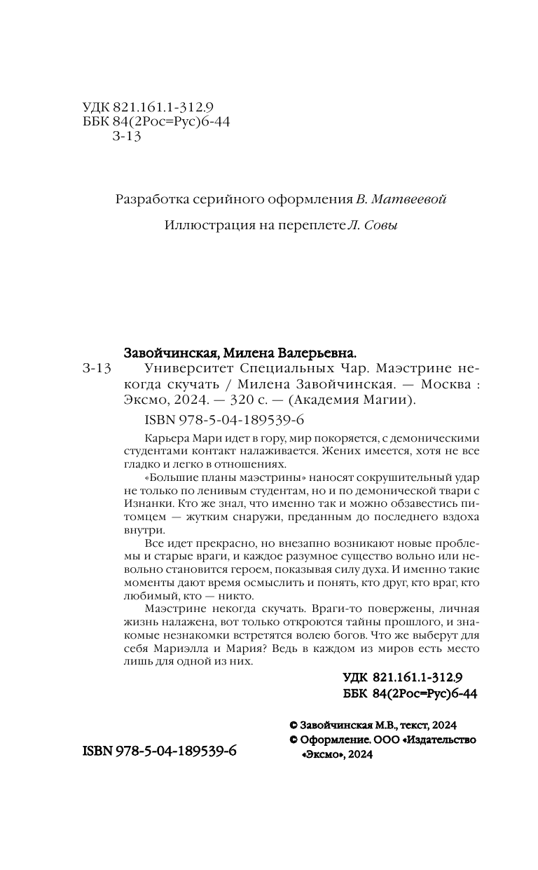 Университет Специальных Чар. Маэстрине некогда скучать (Завойчинская Милена Валерьевна); ООО "Издательство "Эксмо", 2023