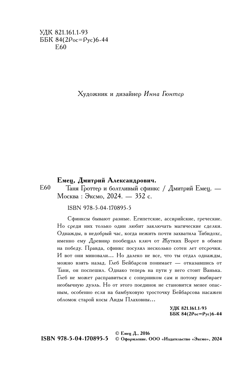 Таня Гроттер и болтливый сфинкс (#13) (Емец Дмитрий Александрович); Эксмо, 2024