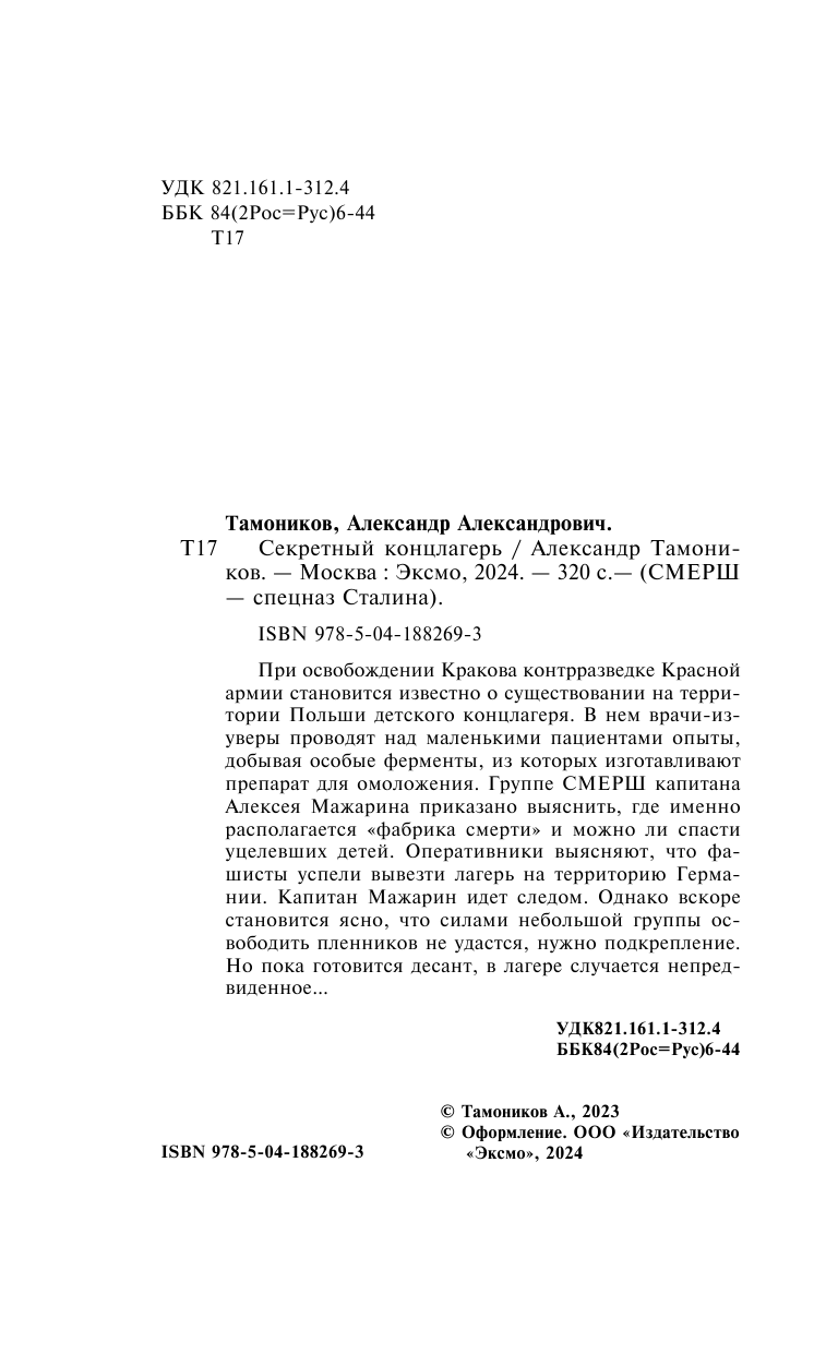 Книга: Секретный концлагерь (Тамоников Александр Александрович); ООО "Издательство "Эксмо", 2023