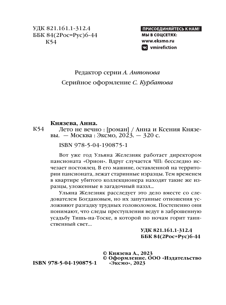 Книга: Лето не вечно (Князева Анна, Князева Ксения); ООО "Издательство "Эксмо", 2023