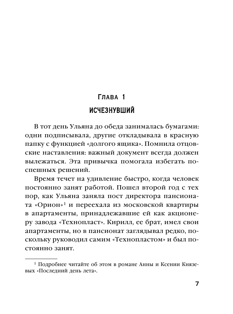 Издательство «Эксмо» представляет детективный роман Анны и Ксении Князевых «Лето не вечно» из нового сериала «Ульяна Железняк. Тени прошлого». Отличительная особенность цикла — расследование старых преступлений. Они странным образом связаны с теми, что происходят в загородном пансионате, где работает главная героиня романа Ульяна Железняк.