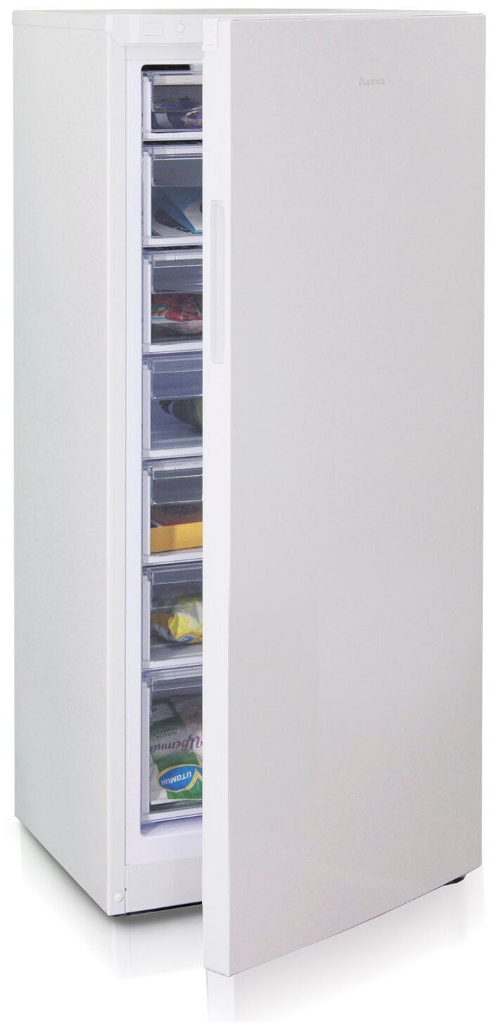 Морозильная камера «Бирюса» М6046 работает на основе стандартного компрессора, который выдает шум до 41 дБ. Используемый хладагент — R600A. Общий объем камеры равен 230 л. Внутри находятся семь прозрачных ящиков. За сутки замораживается до 20 кг продуктов питания. Светодиодное освещение обеспечивает яркое освещение внутреннего пространства.Управление производится при помощи механической панели, находящейся в верхней части за дверью. При необходимости можно перенавесить дверь с одной стороны на другую.Минимальная температура рабочей зоны составляет -18°С. Доступен режим быстрой заморозки. При оставлении двери открытой срабатывает световая и звуковая сигнализация. Примерное время автономного сохранения холода достигает 12 часов. Класс энергопотребления — А. За год расходуется до 240,9 кВт*ч. Потребляемая мощность составляет 92 Вт.