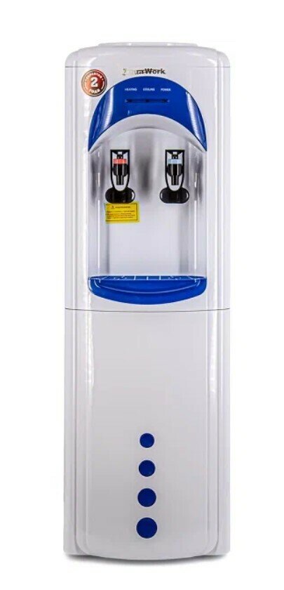 Напольный кулер для воды Aqua Work 17-LKR с нагревом, без охлаждения в монолитном стальном корпусе.Удобная в пользовании высота корпуса - 96 см;Изготовлен из неражвеющей стали;Бак для горячей воды емкостью 1 литр с нагревательным элементом мощностью 700 Вт рассчитан на нагрев в течение 1 часа 7 и более литров до температуры 90-96 градусов;Из синего краника течет вода комнатной температуры *;2 удобных краника типа "нажим кружкой";Съемный каплесборник;Металлический корпус позволяет использовать стаканодержатели с креплением на магните или двухстороннем скотче;Бутыль с водой 19 литров устанавливается сверху;* Из-за расположенного рядом с распределительной емкостью работающего на нагрев бака допускается подача из синего краника первых 150-200 мл воды с температурой на несколько градусов выше комнатной.