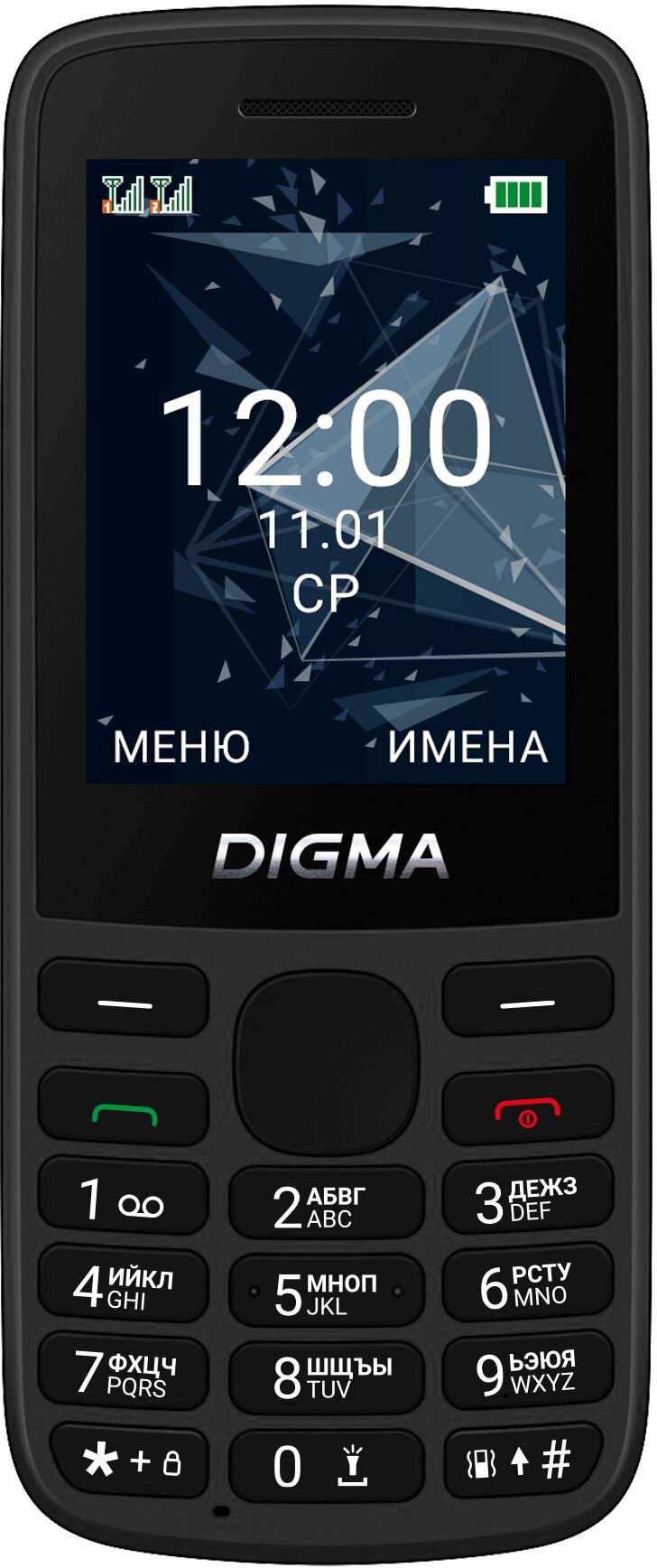 Мобильный телефон Digma - это функциональное и надежное устройство, созданное для комфортного использования. Он отлично подходит как основной телефон или резервный вариант для поездок и путешествий. Темно-синий моноблок с элегантным дизайном приятен на ощупь и выглядит стильно. Благодаря двум SIM-картам можно легко разделить рабочие и личные контакты, а 2,4-дюймовый экран с разрешением 240x320 пикселей обеспечивает яркое и четкое отображение информации. Наслаждайтесь безупречной связью благодаря поддержке GSM900/1800. Определенно, Digma - это отличный выбор для тех, кто ценит функциональность и качество по доступной цене