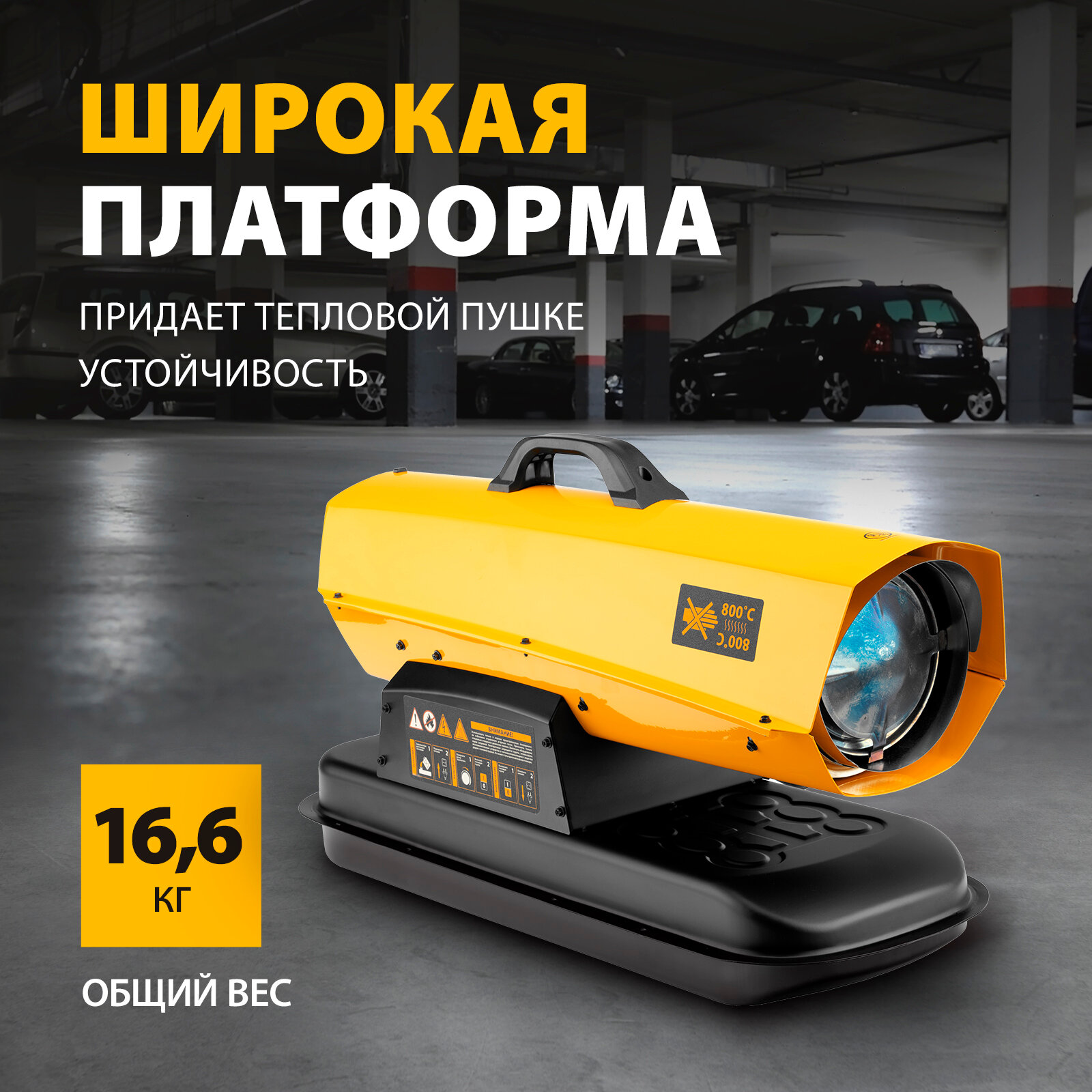 Дизельная тепловая пушка DENZEL (Дензел) - это эффективное оборудование, которое позволит быстро прогреть помещение площадью 250 квадратных метров. Устройство оснащено механическим термостатом, который поддерживает заданную температуру в автоматическом режиме. Пушки работают на дизельном топливе и оснащены топливным баком объемом 19 литров.