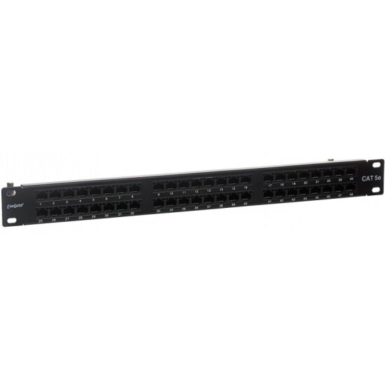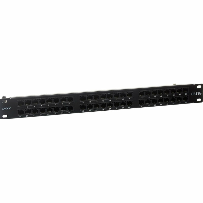 Патч-панель Exegate EX281081RUS (19" UTP 48 port cat.5e KRONE&110(dual IDC) 1U RoHS с кабельным органайзером Black EPPHD-19-48-8P8C-C5e-110D
