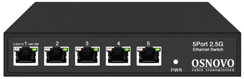 Коммутатор OSNOVO 2.5G Ethernet на 5 RJ45 портов. Порты: 5 x 2.5G (10/100/1000/2500Base-TX) SW-5D-1