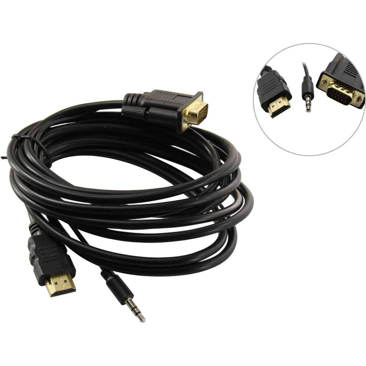 Кабель-переходник HDMI-VGA ExeGate (19M/15M+3.5mm Jack M, 3м) Преобразователь цифрового HDMI сигнала в VGA видео и стерео-аудио