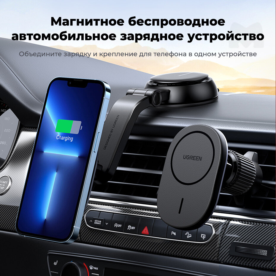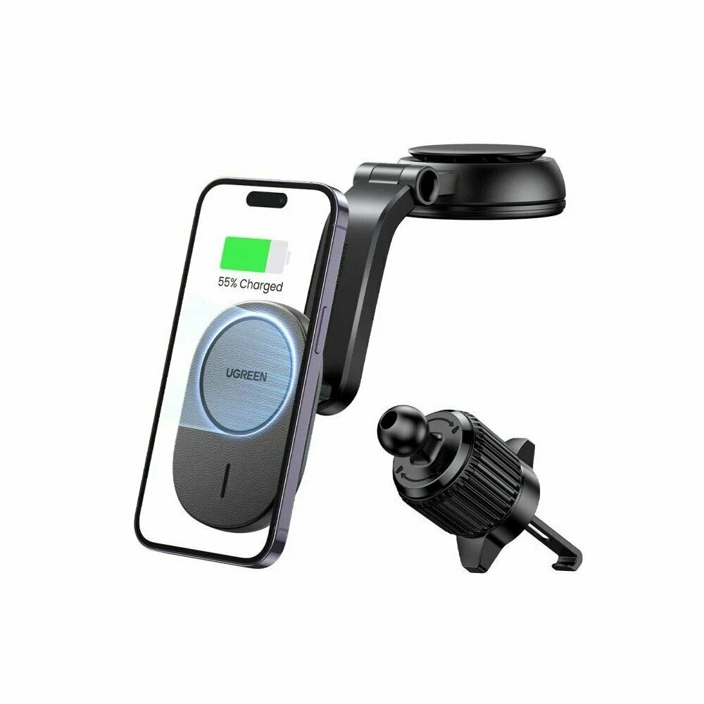 Держатель автомобильный UGREEN магнитный с функцией зарядного устройства. Цвет: черный CD345