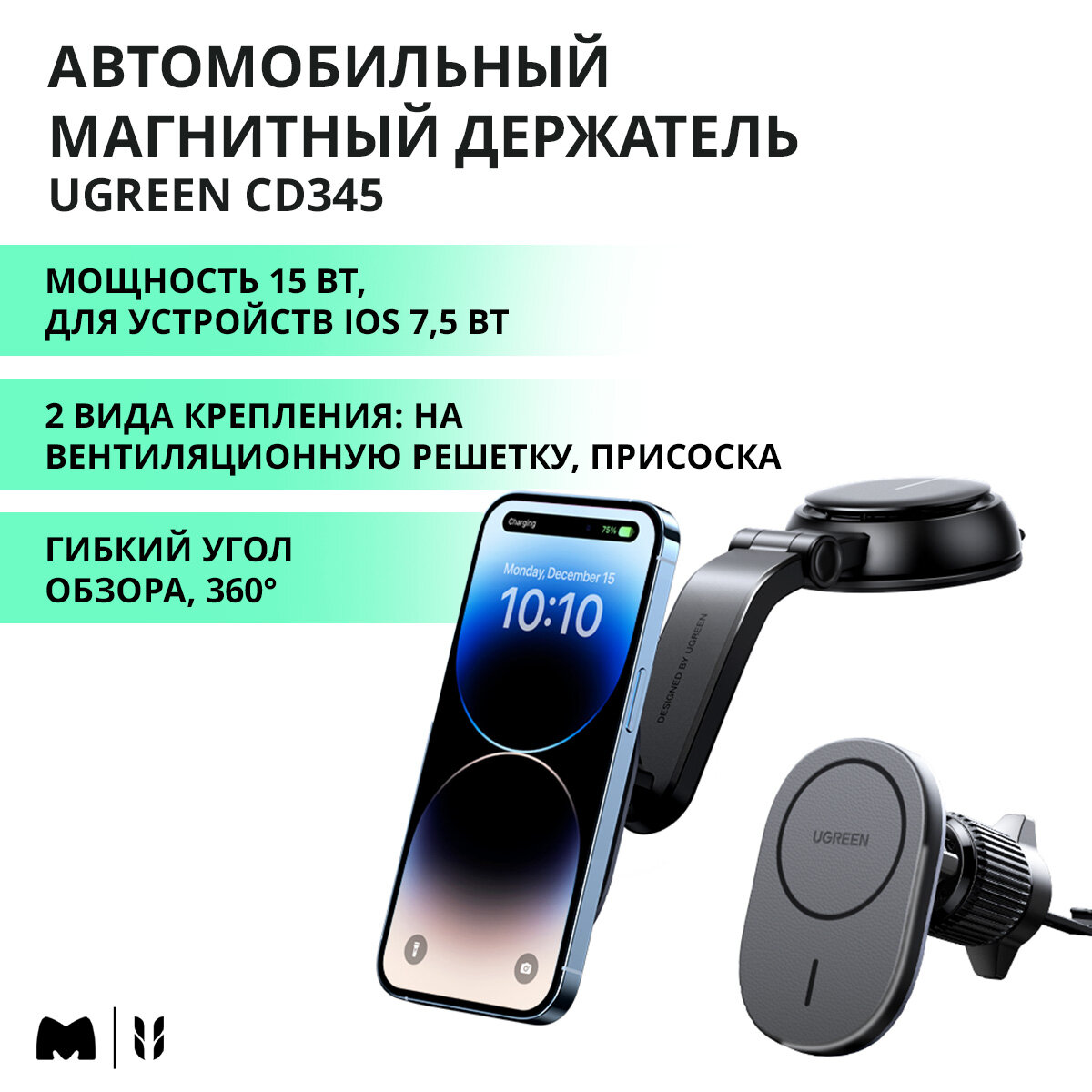 Сервис сравнения цен СкидкаГИД предлагает сравнить цены на товар «Держатель автомобильный UGREEN магнитный с функцией зарядного устройства. Цвет: черный CD345»