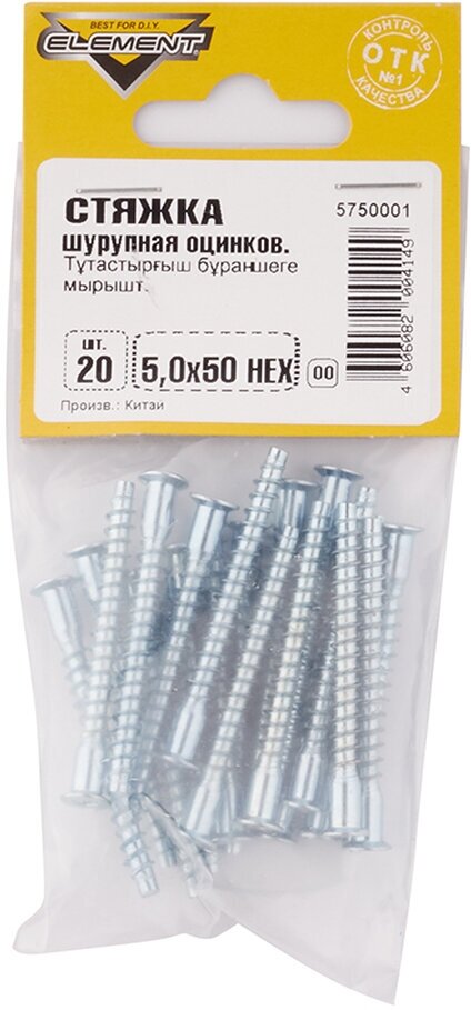 Стяжка шурупная оцинкованная 50 х 50 HEX 20 штук+ключ 1MarKa