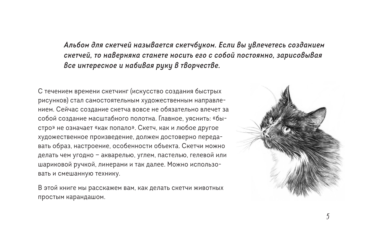 По простым пошаговым мастер-классам вы научитесь работать с карандашом и штриховкой, освоите базовые навыки скетчинга и сможете нарисовать любое животное — от дружелюбного ретривера до забавного хамелеона. Кроме того, вы узнаете, как работать со светом и тенью, строить объем и создавать рисунки с объектами в движении.