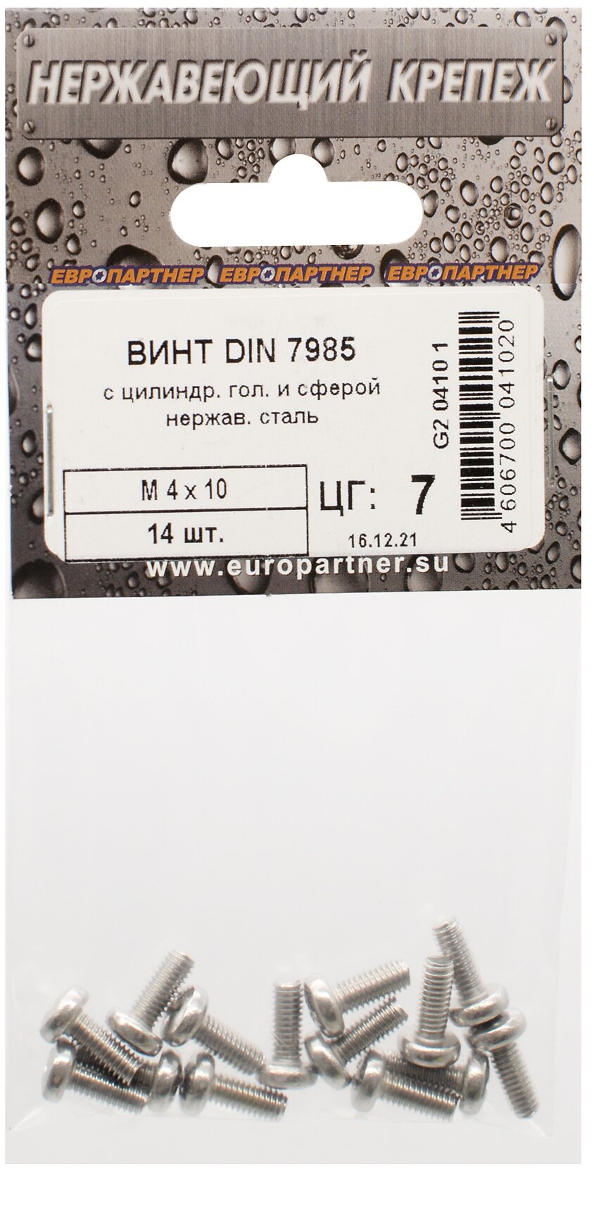 Винт DIN 7985 с цилиндрической головкой и сферой М4 х 10 14 штук Европартнер М4х10 DIN7985 (14 шт.)
