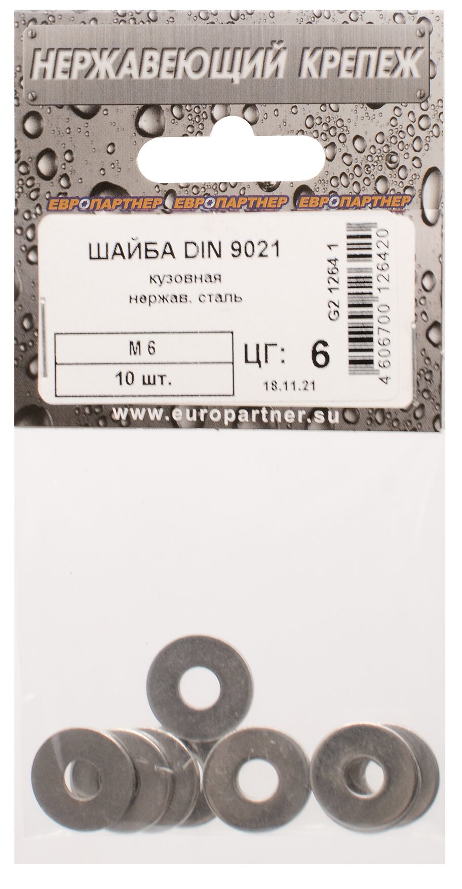 Шайба кузовная DIN 9021 M6 10 штук Европартнер