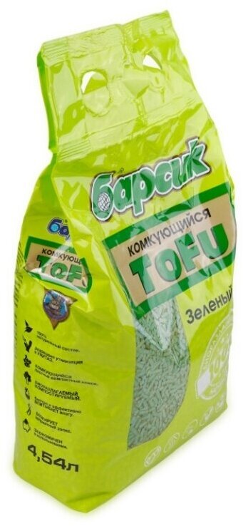 Наполнитель комкующийся Барсик Tofu зеленый чай 15 л