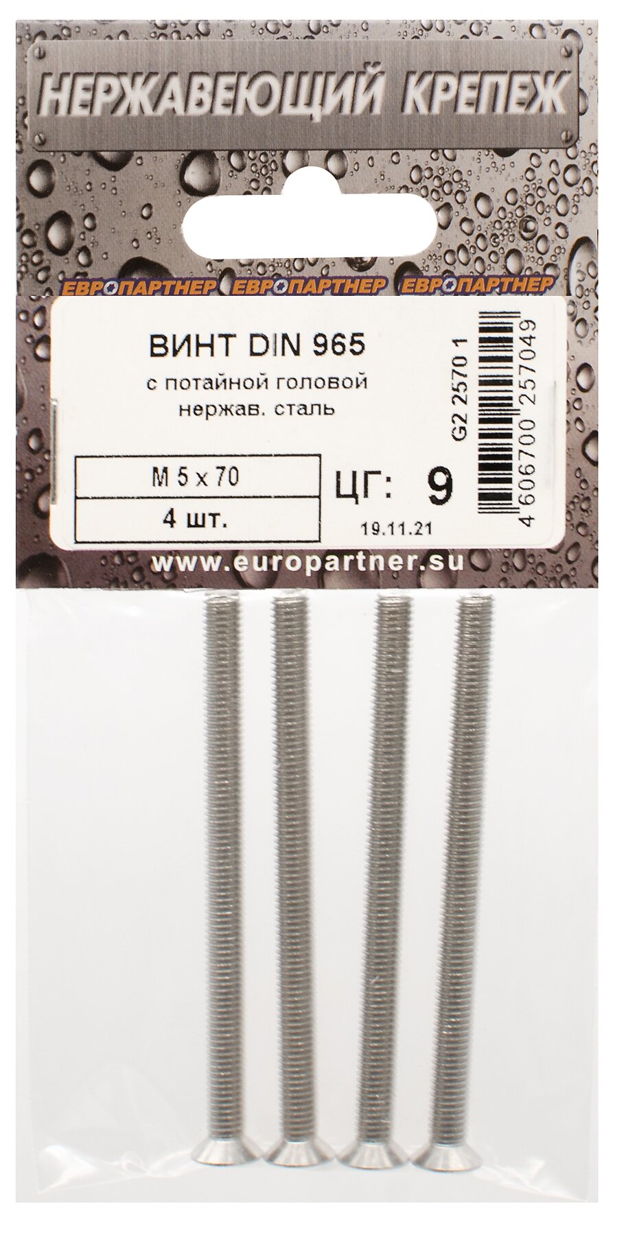 Винт DIN 965 с потайной головкой 5 х 70 4 штуки Европартнер