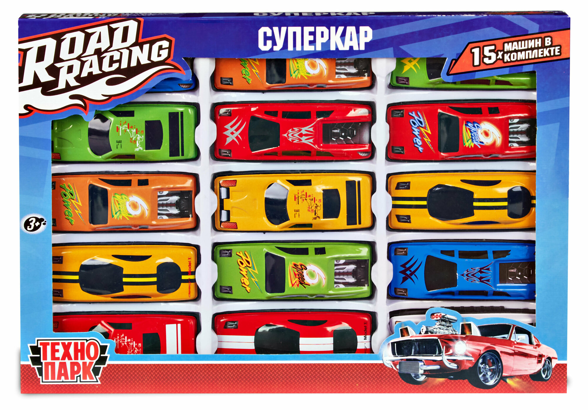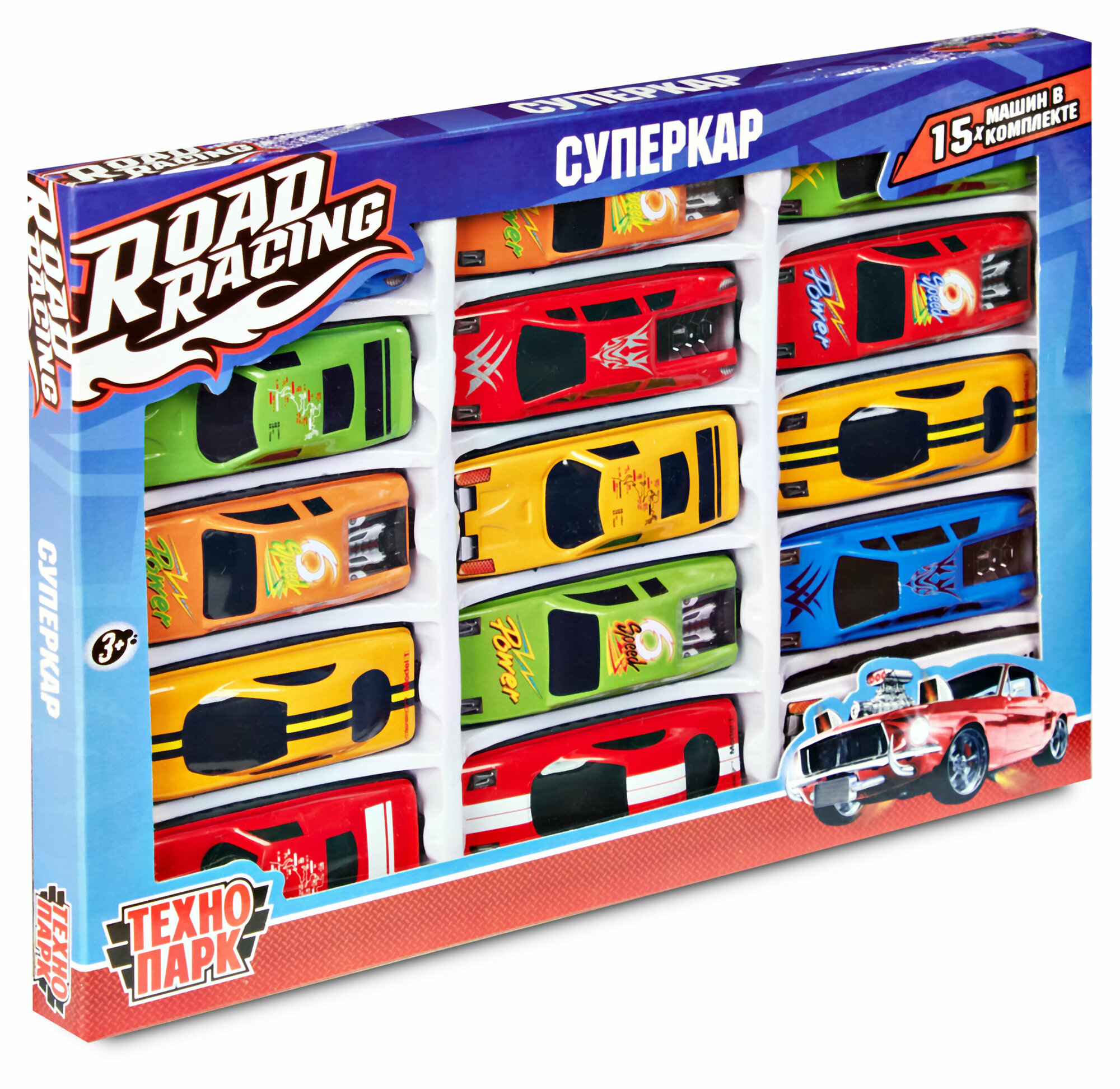 Набор металлических машинок Технопарк Road Racing Суперкар 75 см 15 шт
