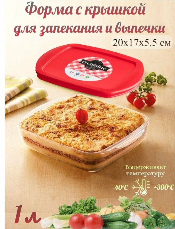Блюдо для запекания и выпечки с крышкой O CUISINE 20x17x5.5см квадратное PYREX 211PC00/1046 (размер: 20x17x5.5 см)