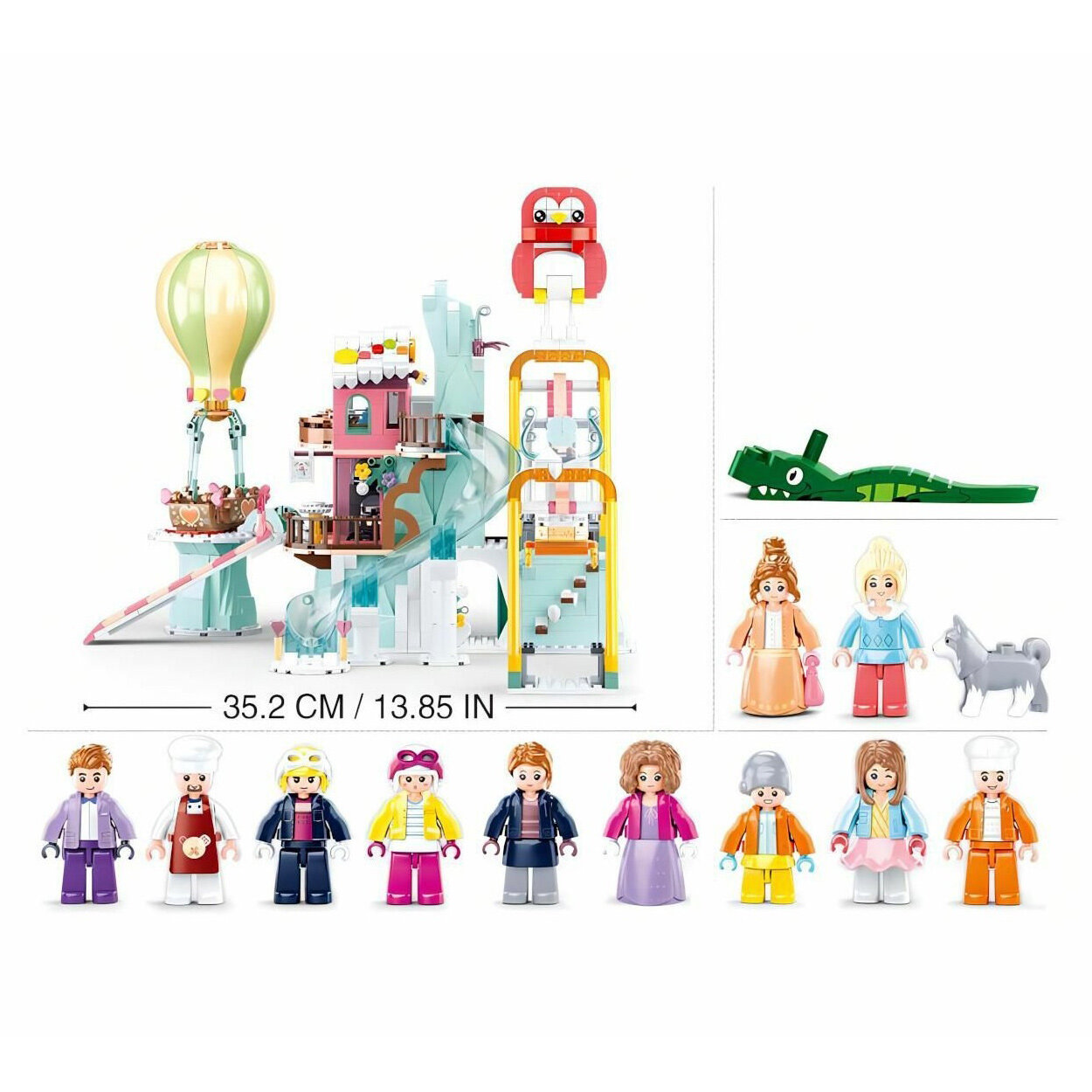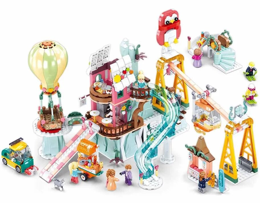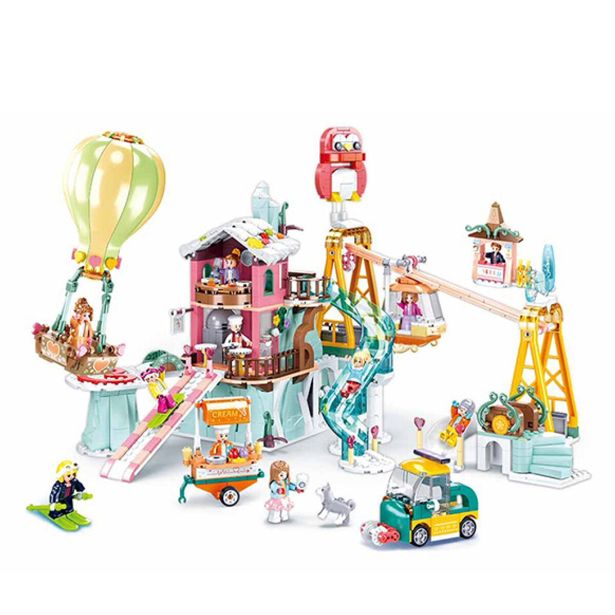 Конструктор "Лыжная площадка" (1065 деталей) в коробке Sluban Розовая мечта: Горнолыжная база