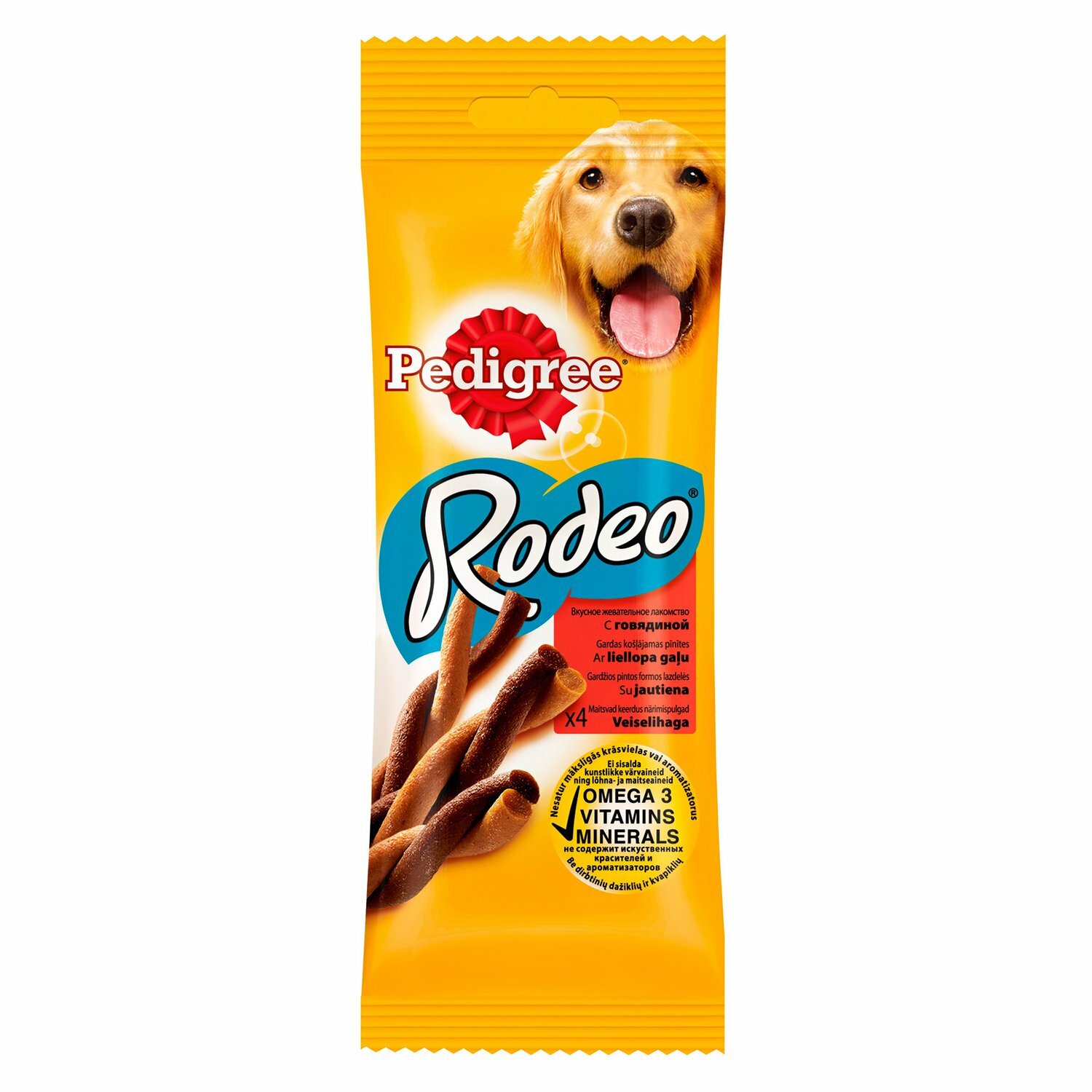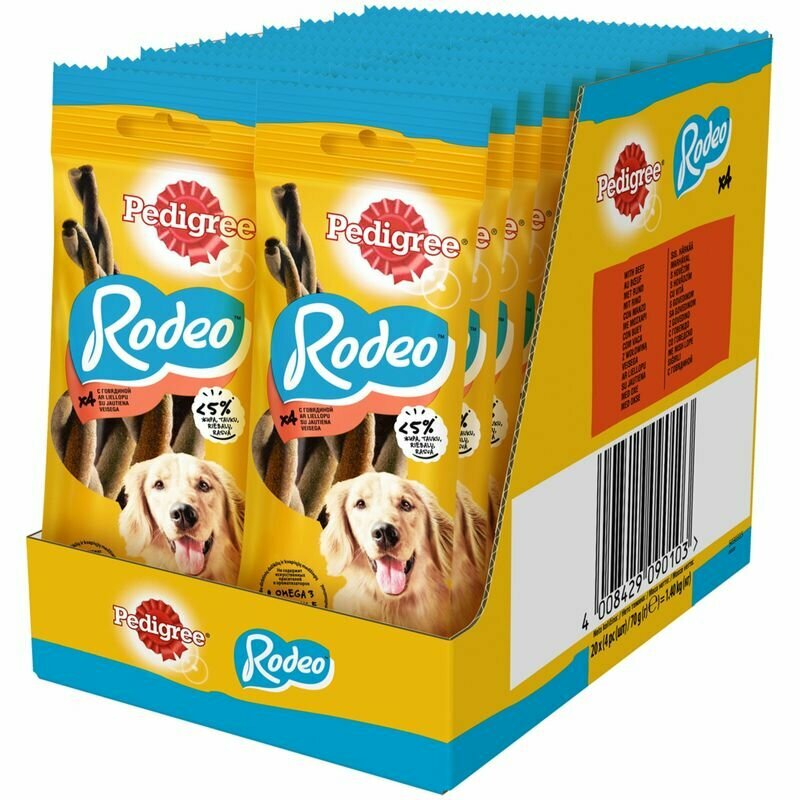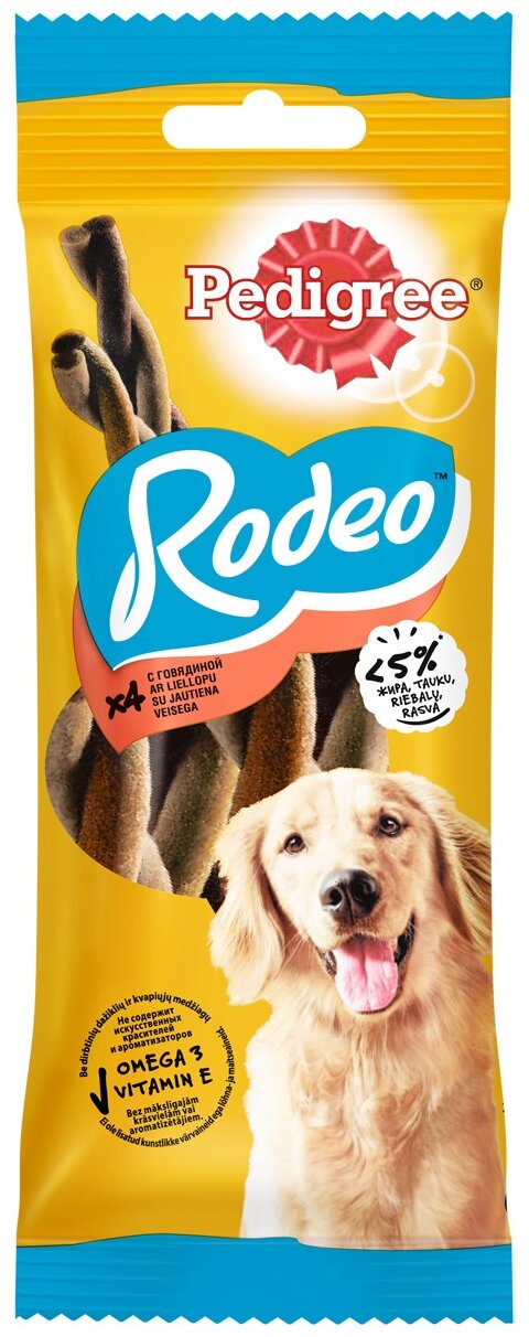 Полезное жевательное лакомство PEDIGREE Rodeo с говядиной прекрасно подходит для того, чтобы побаловать собаку. PEDIGREE Rodeo с говядиной доставит удовольствие вашему питмоцу и позаботится о его здоровье. Вашей собаке понравится скрученная форма косичек и аппетитный вкус говядины. Входящие в состав витамины и микроэлементы помогают поддерживать зубы, кожу и шерсть собаки в отличном состоянии.