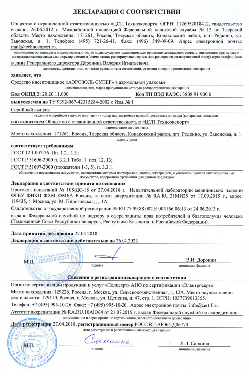 - Аэрозоль SUPER от летающих и ползающих насекомых