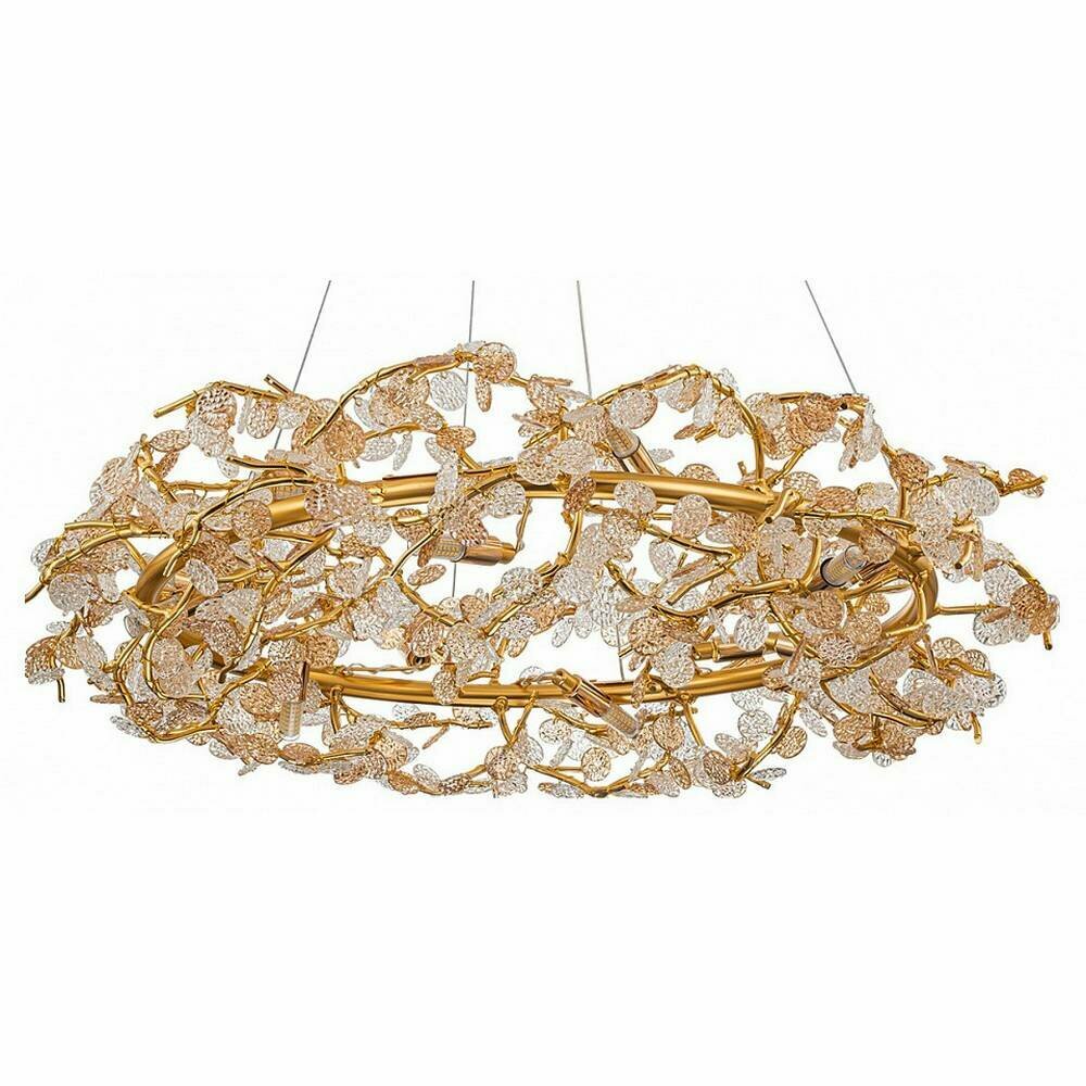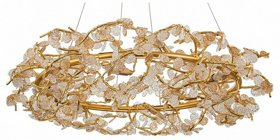 Словно венец славы, серия SPLENDORE символизирует триумф и победу. Его позолоченные завитки кружатся с аристократической грацией, а хрустальные фактурные листья прозрачного и янтарного оттенка переливаются и мерцают. Позвольте серии SPLENDORE наполнить ваше пространство аурой достижений и новых побед. Размер 770*770*200/1000 Мощность G9 12xMAX 10W Цвет ЗОЛОТО/ПРОЗРАЧНЫЙ Материал МЕТАЛЛ/СТЕКЛО