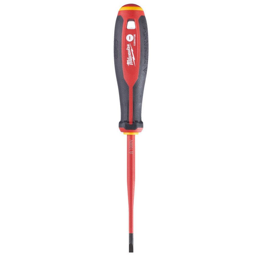 Отвертка диэлектрическая Milwaukee VDE SL0.8X100мм (715) протестирована по стандарту VDE напряжением 10кВ и предназначена для работы в электроустановках под напряжением 1кВ.